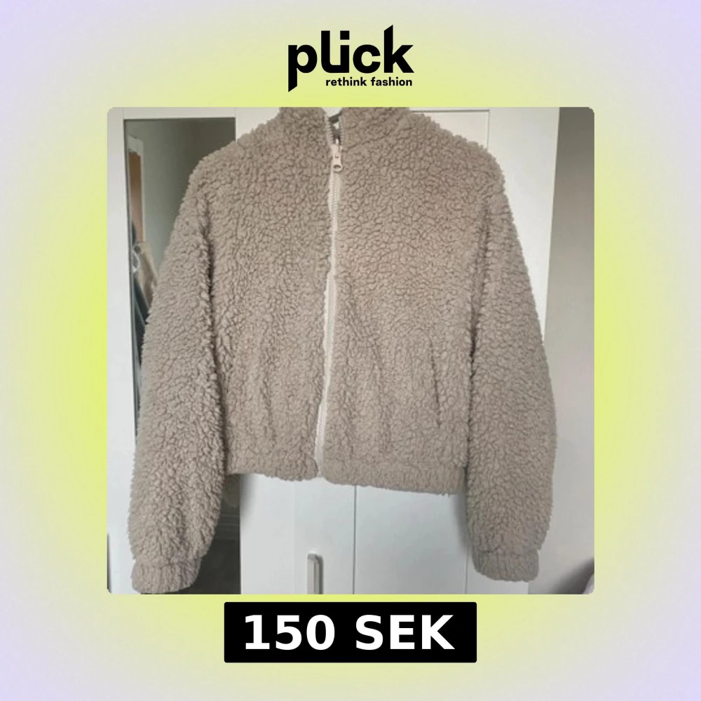 Mysig beige teddyjacka med lång ärm och dragkedja framtill. Jackan har en klassisk bomberjackeform och är tillverkad i ett fluffigt syntetmaterial som ger en varm och trendig look. Perfekt för kyliga dagar.