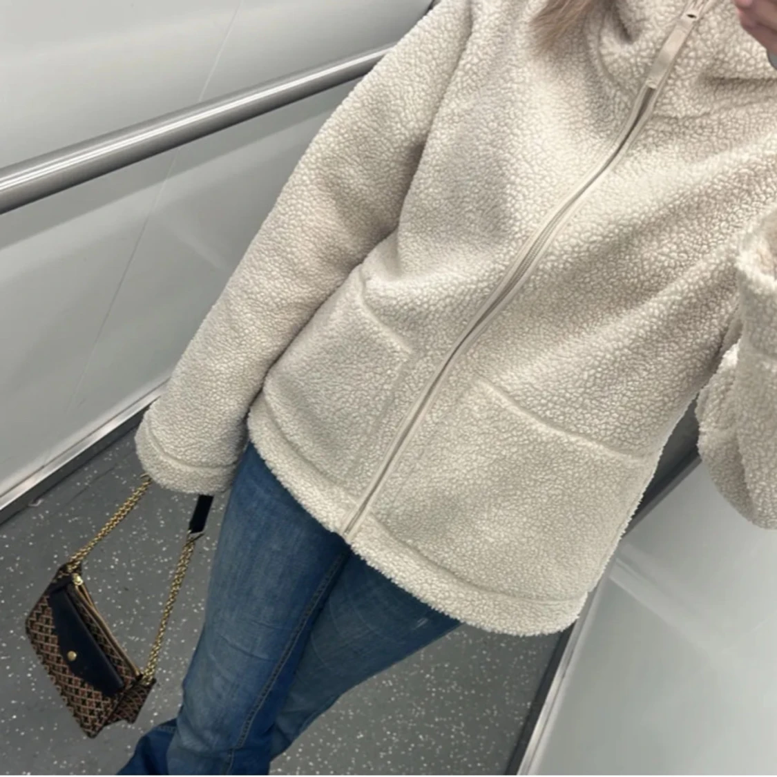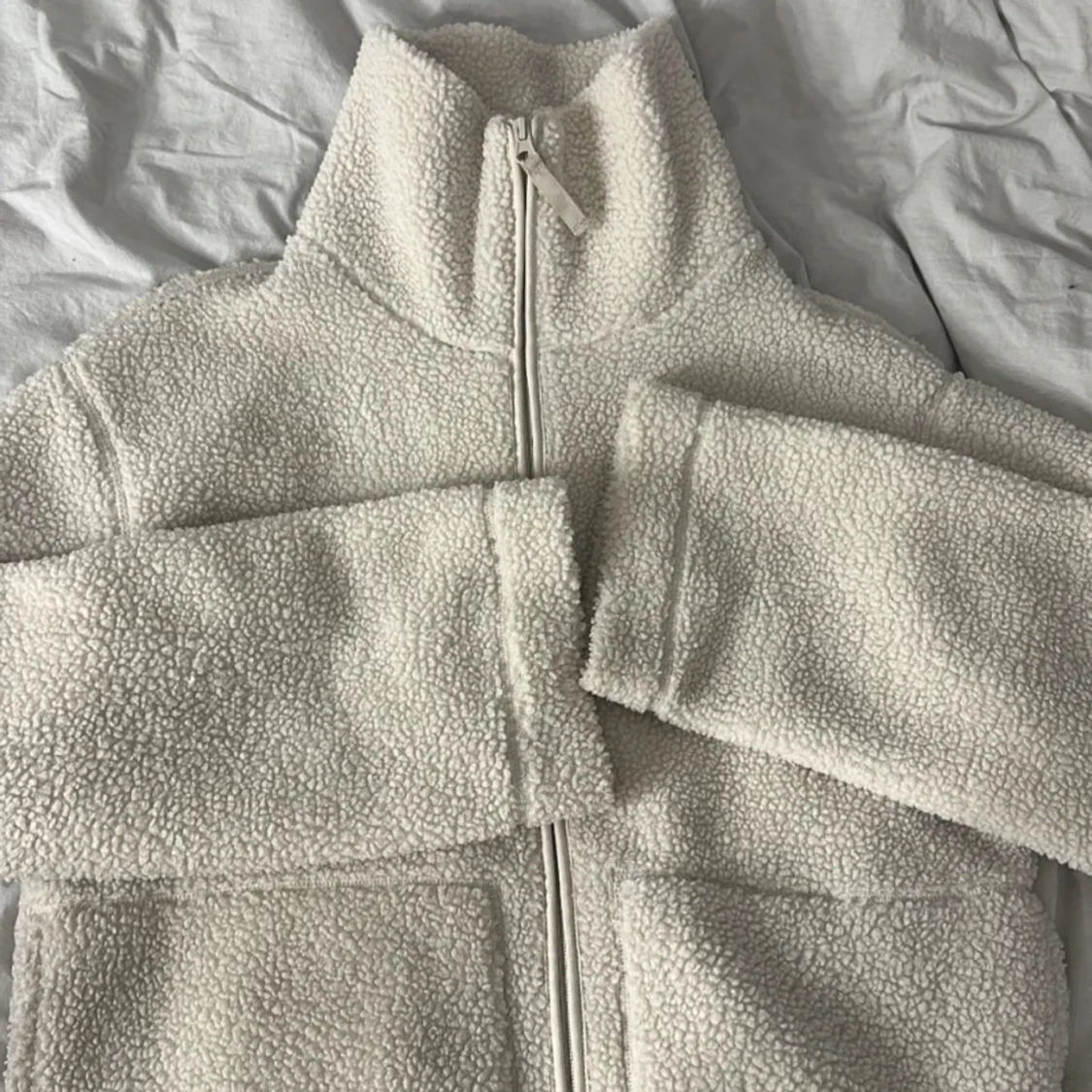 Mysig beige teddyjacka med dragkedja framtill. Jackan har en hög krage och långa ärmar. Använd ett or gånger men skulle inte säga att det är något man ser så jättebra. LÅNADE BILDER !! ❤️🥰