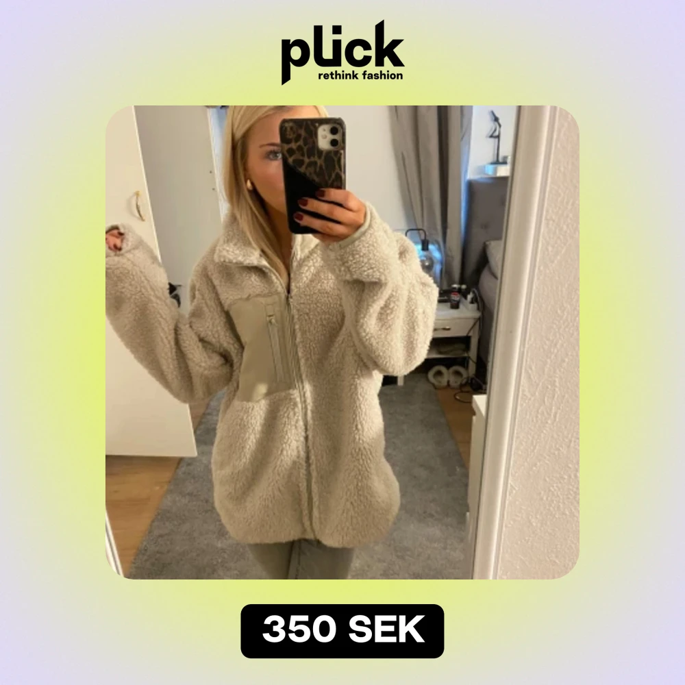 Mysig beige teddyjacka, är storlek S men är som storlek M. Den är helt ny och oanvänd, säljer pga att den är för stor