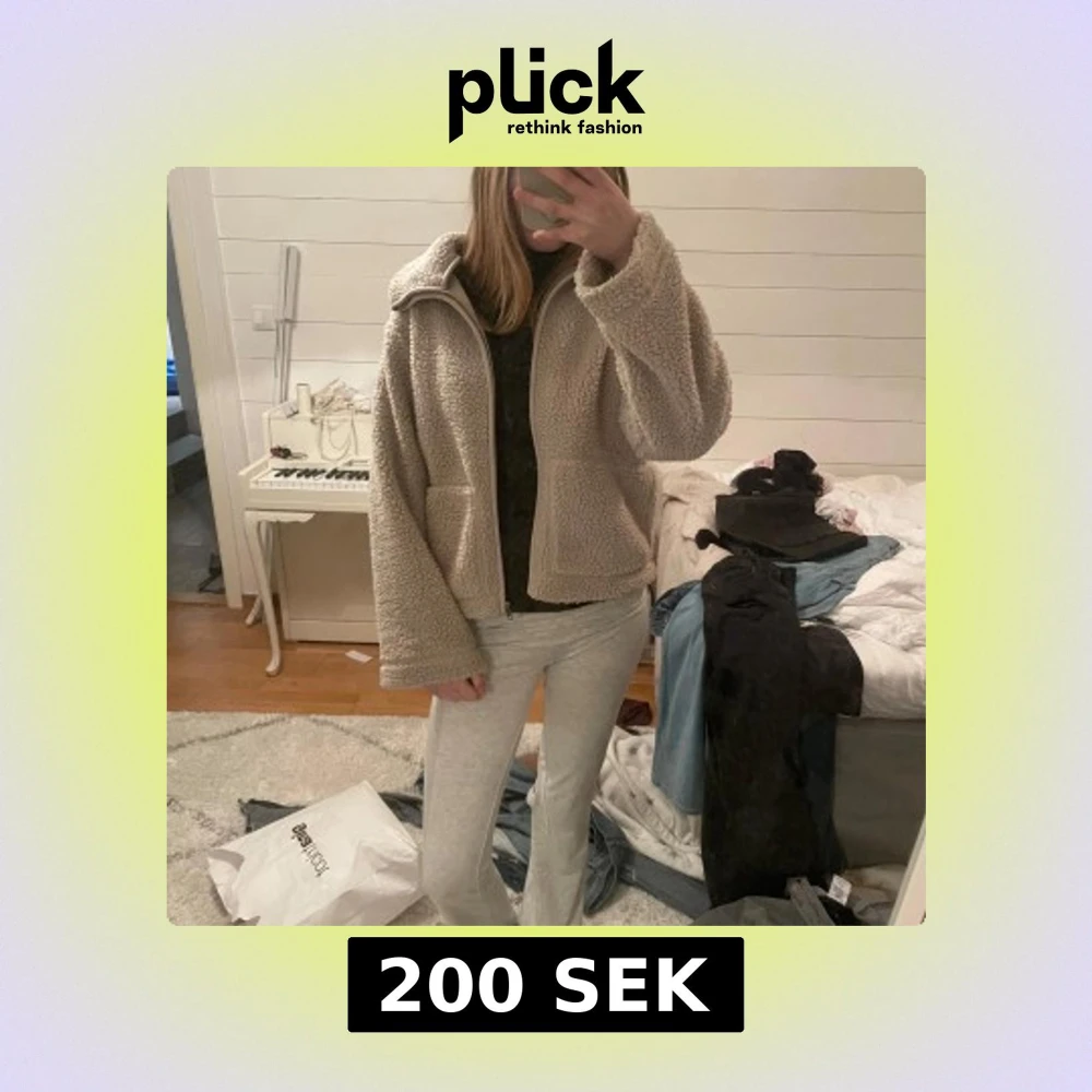 Mysig beige teddyjacka med dragkedja framtill och två stora fickor.