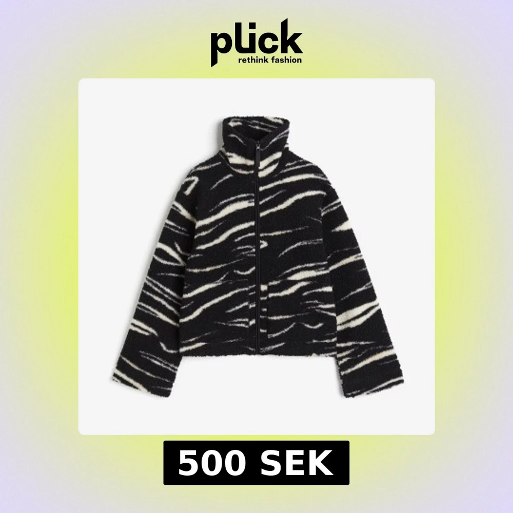 Säljer en svart teddyjacka med vitt zebramönster, från H&M. Jackan har dragkedja framtill och är långärmad. Perfekt för dig som vill sticka ut med en cool och trendig look.