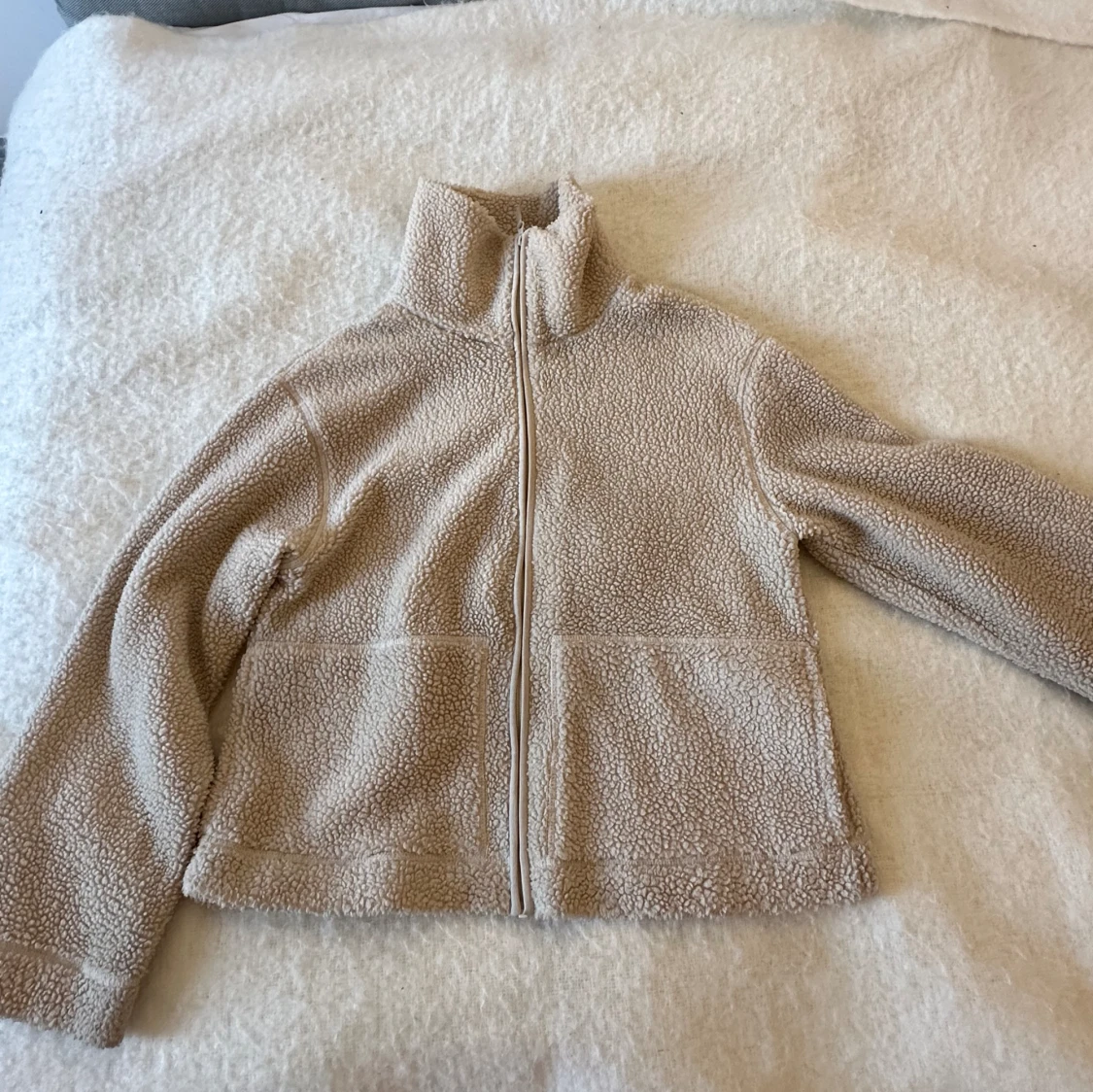 Säljer denna populära teddyjackan från H&M i beige från förra året, slutsåld. Inga defekter använd en höst! Be gärna om fler bilder💕