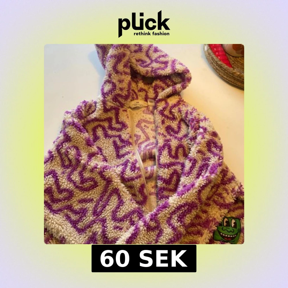 Mysig teddyjacka från H&M i lila och beige med ett unikt mönster. Jackan har en dragkedja framtill och en huva för extra värme. Perfekt för kyliga dagar när du vill vara både bekväm och stilren.