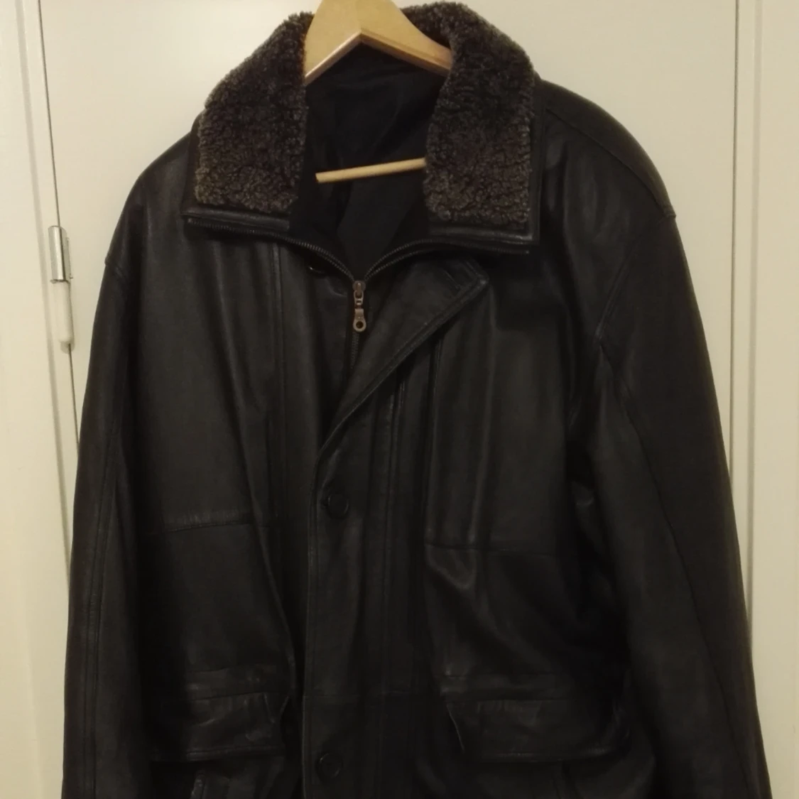 Tezzoro läderjacka från Italien. Den är dubbelfodrad och väldigt varm. Svart. Har använts väldigt lite. Kostar över 500euro ny. Storlek 54. Finns i Solna.