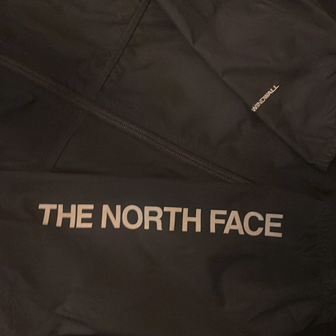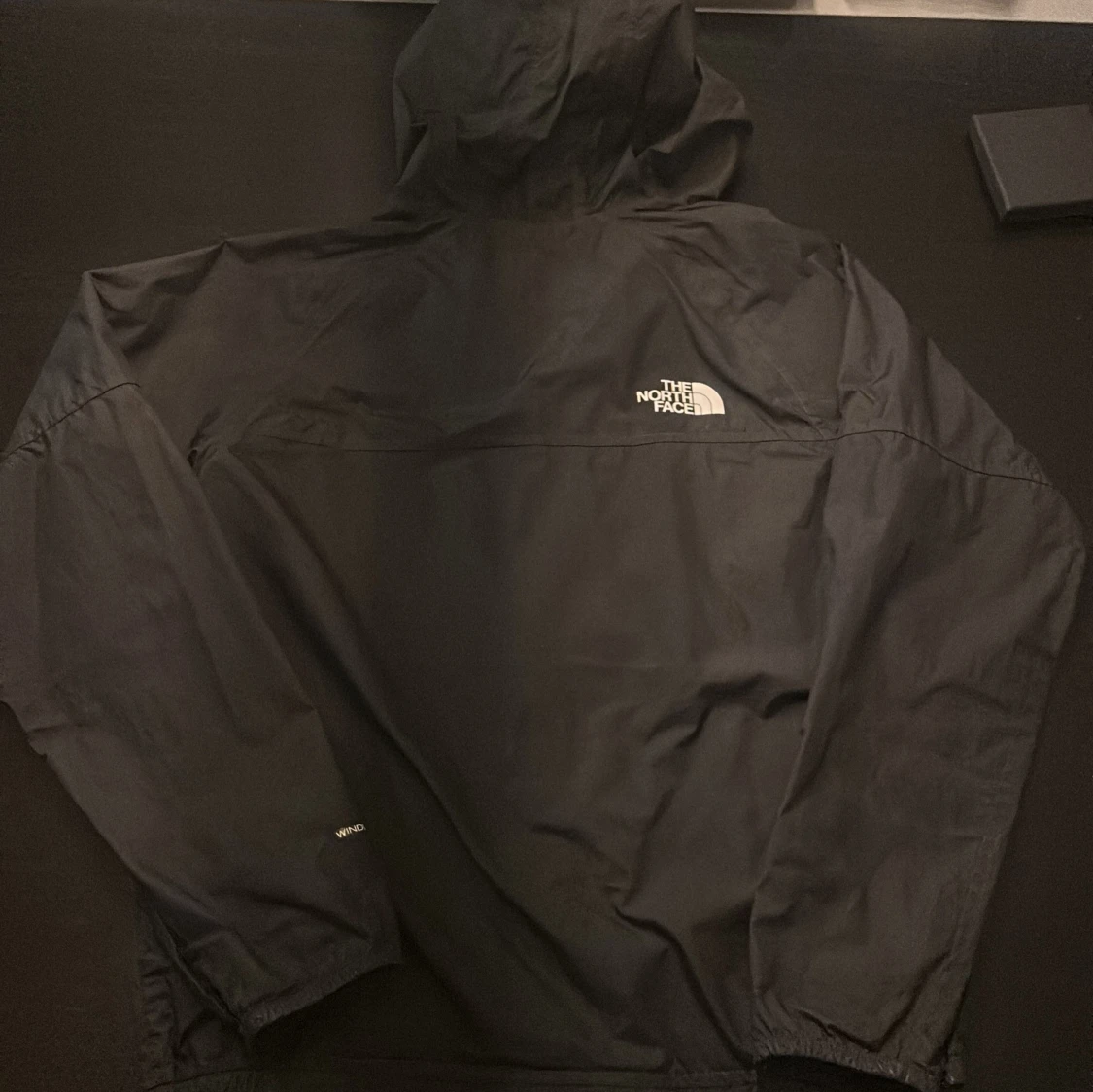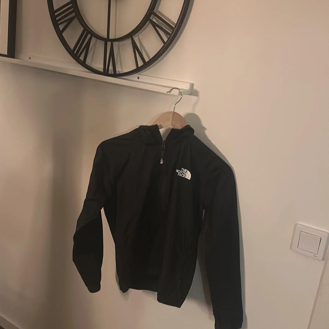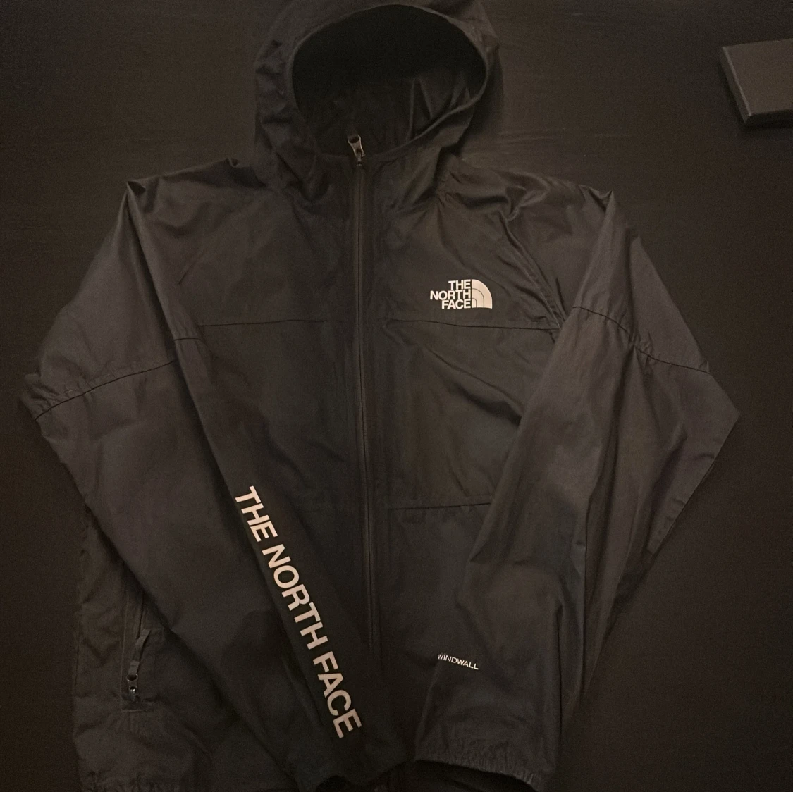 Svart vindjacka från The North Face med huva och hel dragkedja. Jackan har logga på bröstet och ärmen, samt elastiska muddar. Tillverkad i lätt polyester, perfekt för blåsiga dagar. Snygg och enkel design med sportig vibe.