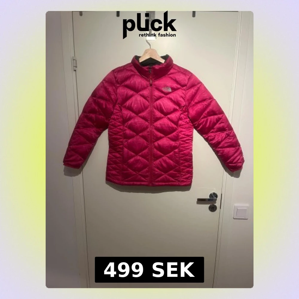 Quiltad pufferjacka från The North Face i en snygg rosa färg. Jackan har dragkedja framtill, två sidofickor med dragkedja och justerbara muddar med knapp. Perfekt för kalla dagar och har en cool, sportig vibe. Pris kan diskuteras. Skicks gärna, bud.
