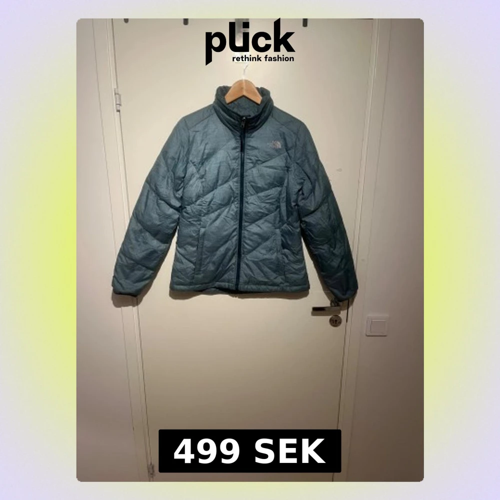 Säljer en blå dunjacka från The North Face i storlek M. Lätt, quiltad och perfekt för kyliga dagar med hög krage och dragkedja. Pris kan diskuteras. Skicks gärna, bud.