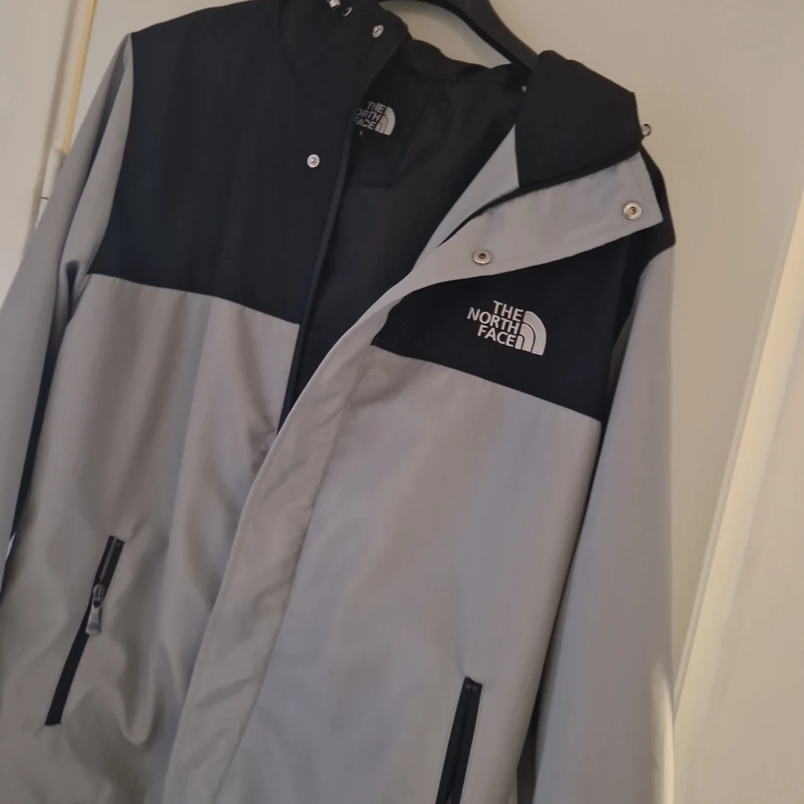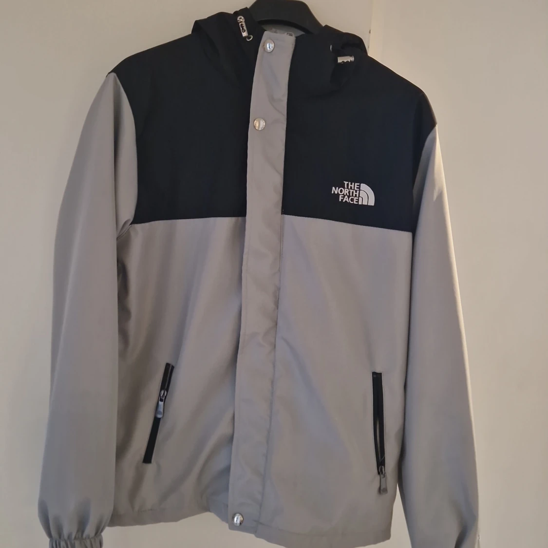 Snygg tvåfärgad vindjacka från The North Face i svart och grått. Jackan har huva med dragsko, dragkedja och tryckknappar framtill samt två fickor med dragkedja. Perfekt för blåsiga dagar och streetwear-stil. Funkar för dom som har strl M oxå