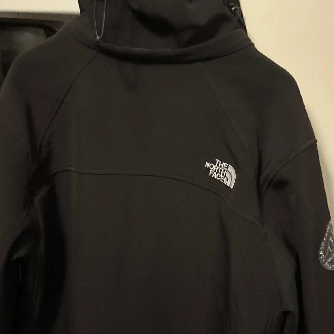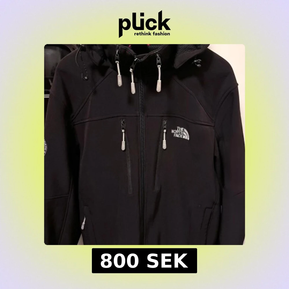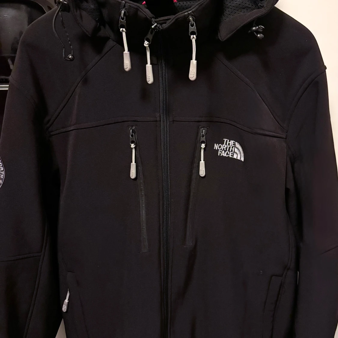Svart vindjacka från The North Face med huva och flera dragkedjeförsedda fickor. Jackan har tekniskt material som står emot regn och kyla, samt vattenavvisande tyg. Luvan kan tas bort, likaså detaljerna på dragkedjorna om man vill förändra jackan lite kosmetiskt. En äventyrsjacka som klarar av allt när det kommer till väder och vind. Liten fläck på vänster arm som framgår på bilderna.
