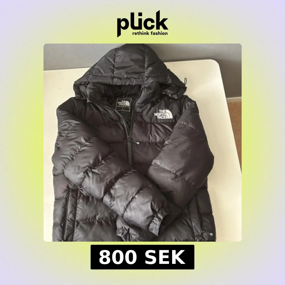 Säljer en svart pufferjacka från The North Face i storlek L. Jackan har huva, dragkedja och två sidofickor. Klassisk logga på bröstet och ryggen. Perfekt för kalla dagar och riktigt snygg streetstil.