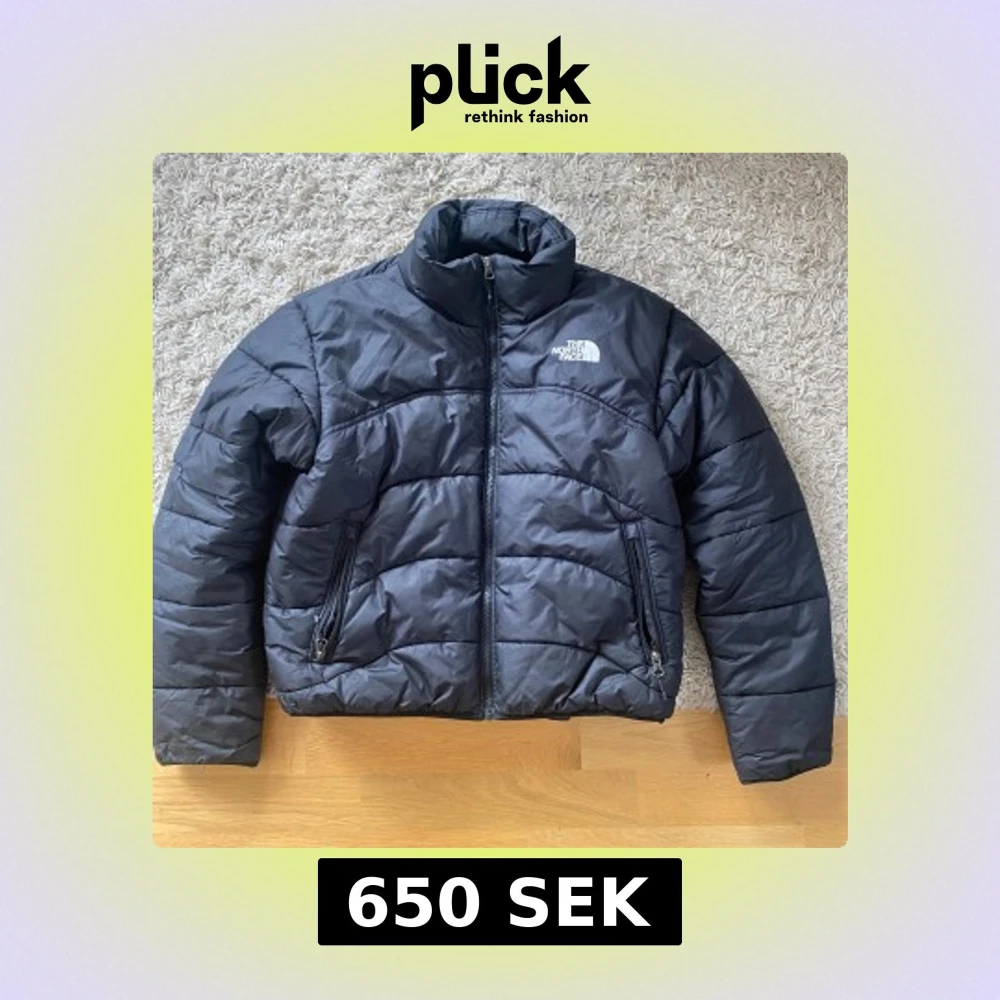 Svart pufferjacka från The North Face i klassisk modell med hög krage och två dragkedjeförsedda fickor. Jackan har quiltad design och logga på både bröst och rygg. Perfekt för kyliga dagar och enkel att matcha med det mesta.