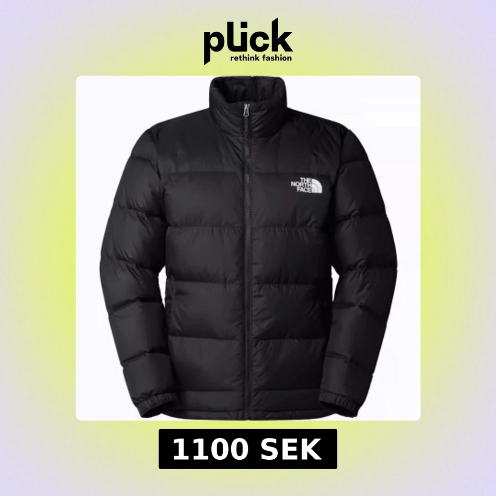 Säljer en svart dunjacka från The North Face med hög krage och dragkedja framtill. Jackan har en klassisk pufferstil med logga på bröstet och är perfekt för kalla dagar. Stilren och enkel design som passar till det mesta.