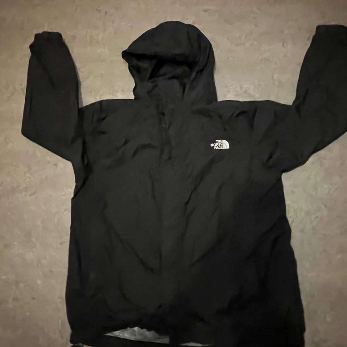 Svart vindjacka från The North Face med huva och meshfoder. Jackan har klassisk logga på bröstet och stängs med dragkedja och kardborre. Perfekt för blåsiga dagar och enkel att slänga på sig när vädret svänger.