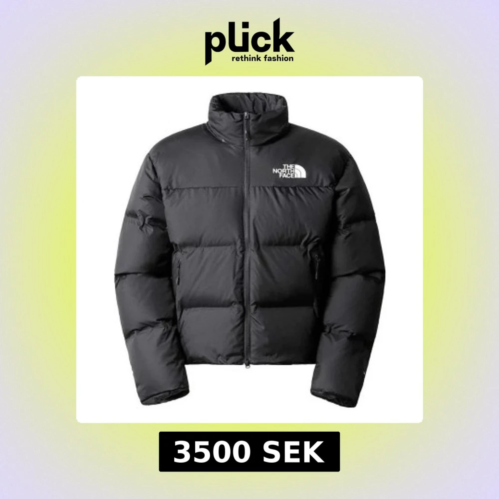 Säljer en svart pufferjacka från The North Face med hög krage och dragkedja framtill. Jackan har nästan alldrig använts