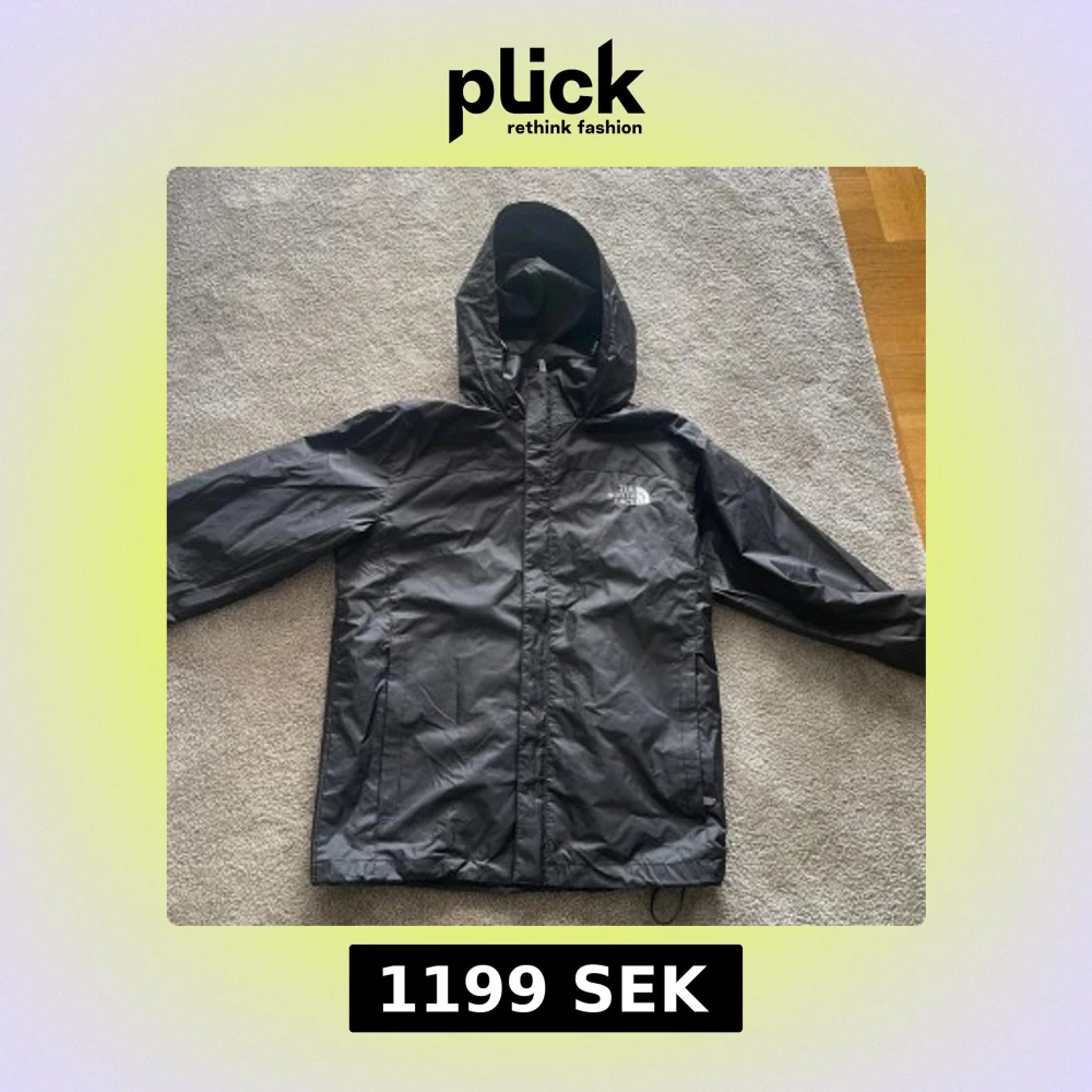 Svart vindjacka från The North Face Summit Series i storlek M. Jackan har huva, dragkedja och är tillverkad i vattentätt och andningsbart syntetmaterial. Perfekt för blåsiga och regniga dagar, med stilren look och logga på bröstet.