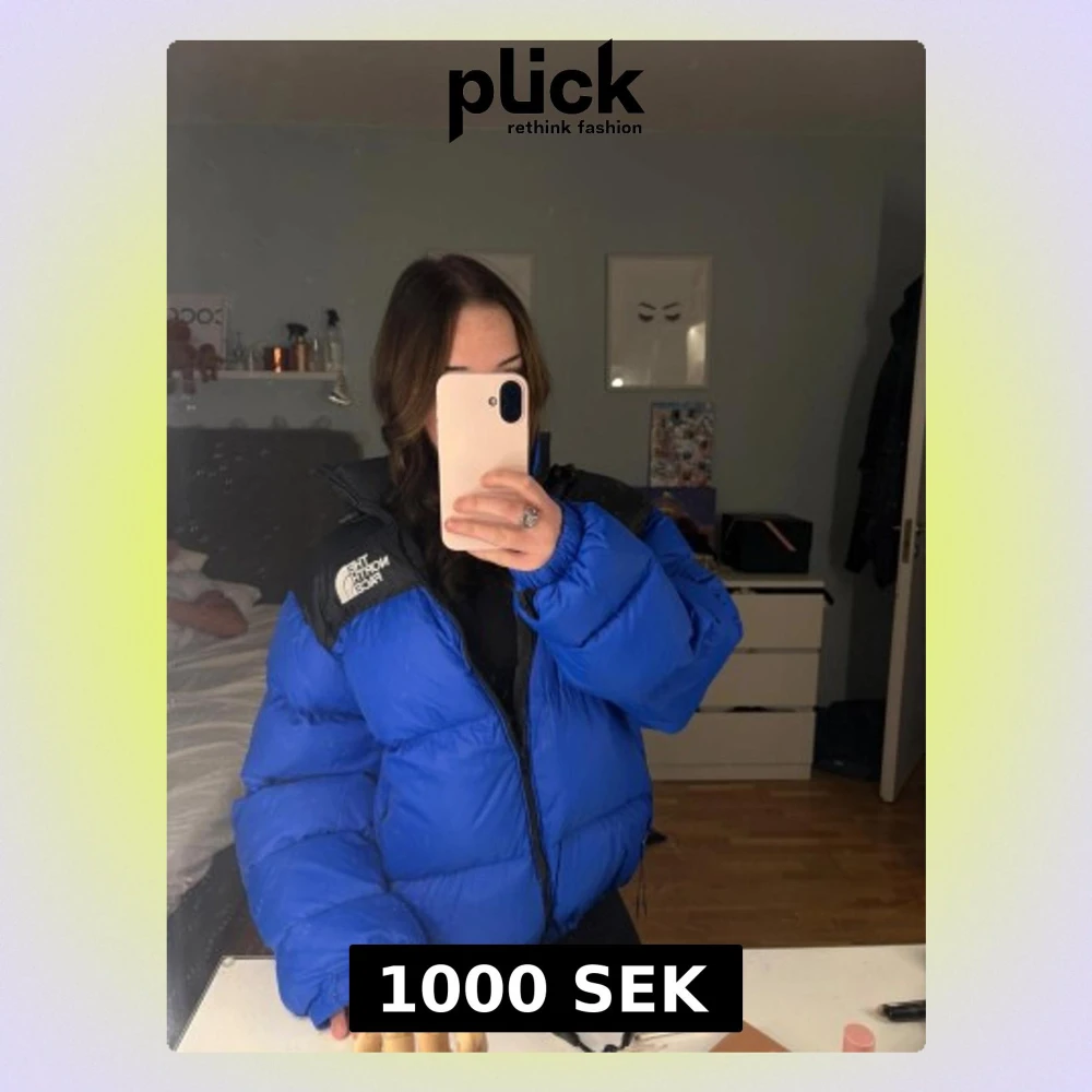 Säljer en blå och svart pufferjacka från The North Face💕 Jackan har hög krage, dragkedja framtill och snörning i nederkant. Den har ny dragkedja