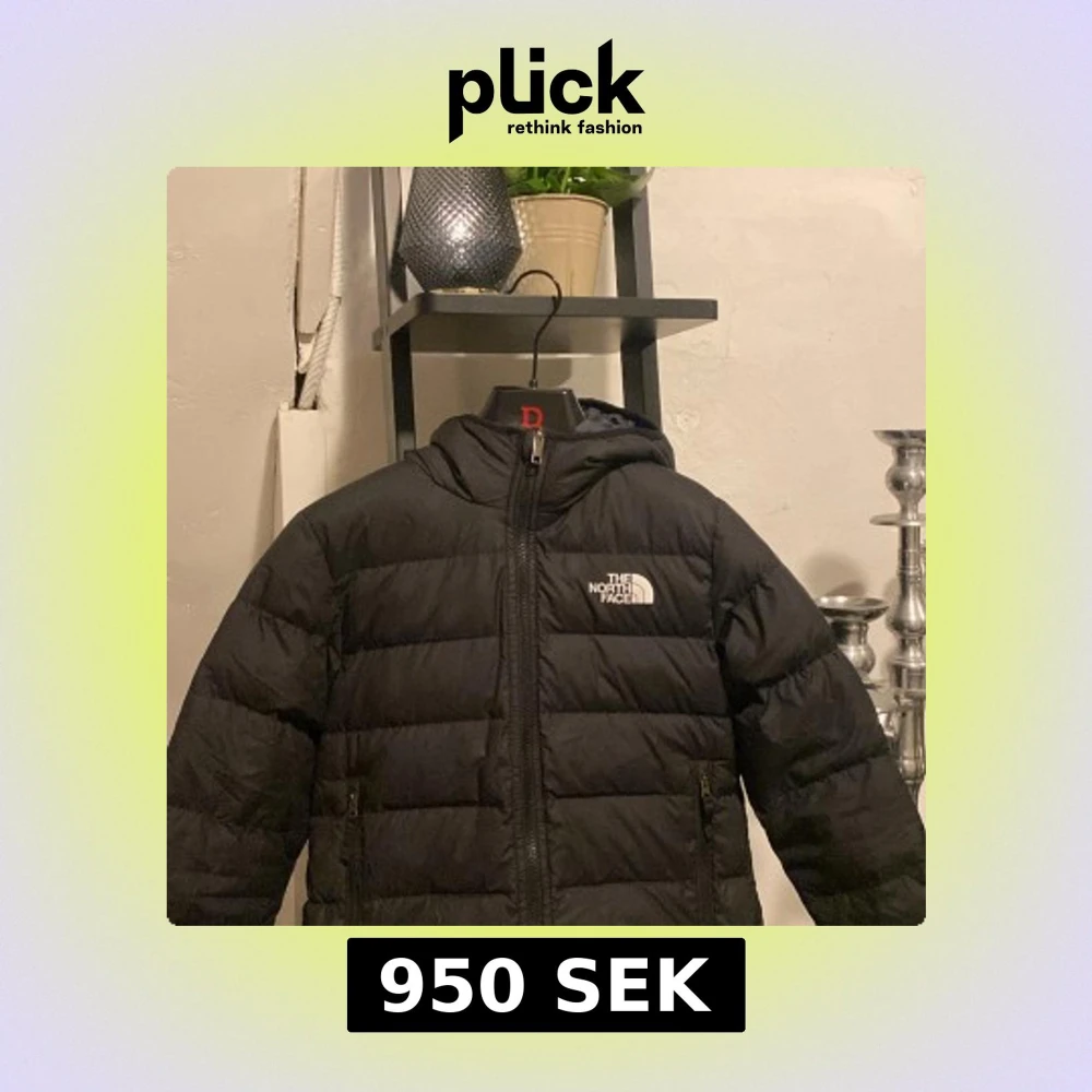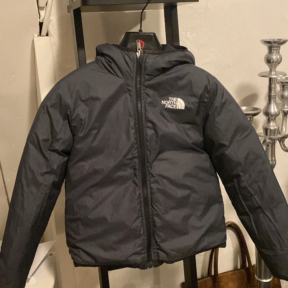 Säljer en svart dunjacka från The North Face, modell för barn i storlek M. Jackan har huva, dragkedja framtill och två sidofickor. Fylld med 600-fill dun för extra värme och har en klassisk, stilren look med logga på bröstet. jackan är vändbar. Passar 10-12 åringar.
