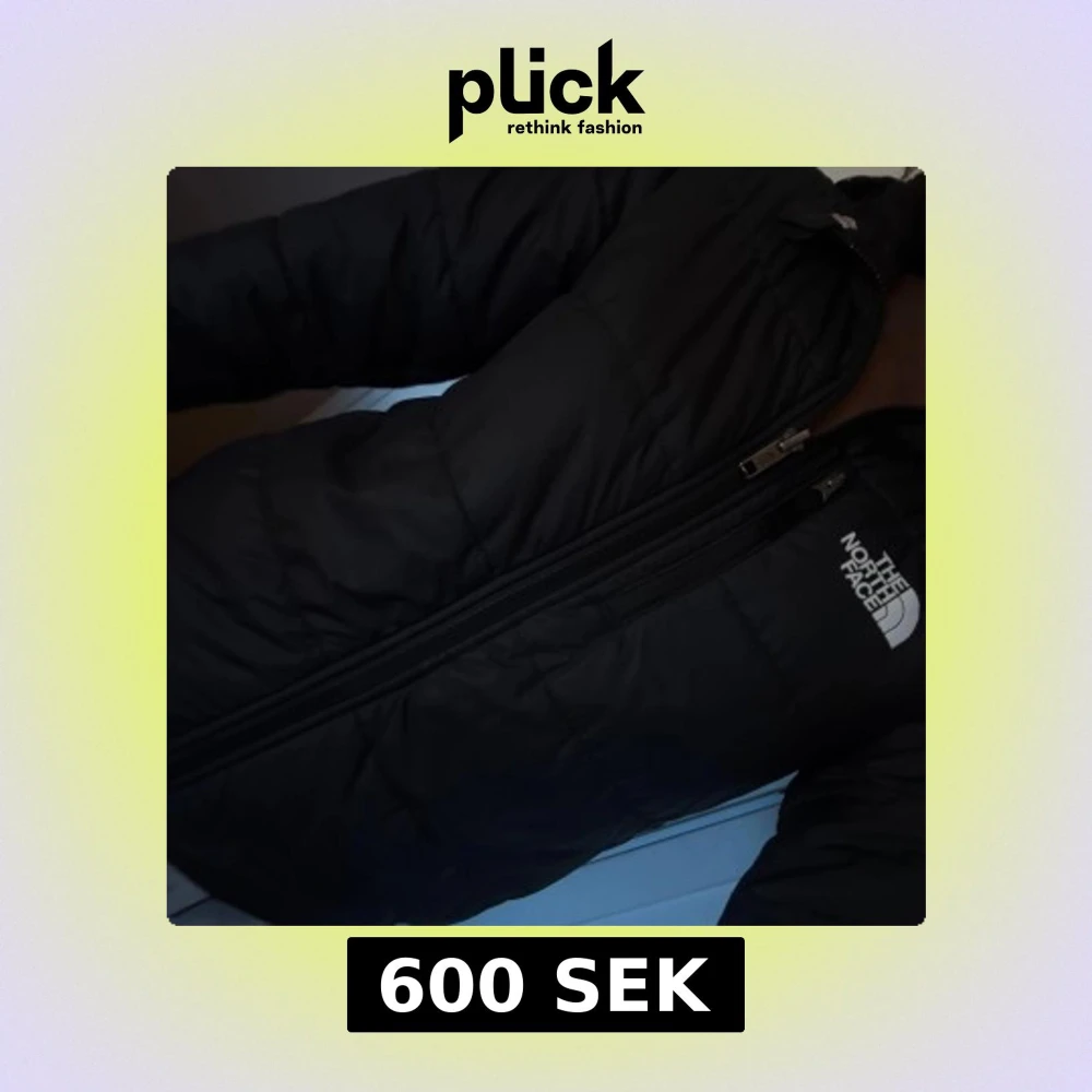 Säljer en svart pufferjacka från The North Face med huva och dragkedja. Jackan har en clean look med logga på bröstet och ett mönster med loggor på insidan som gör att man kan använda jackan då båda sätten🩷Perfekt för kalla dagar och riktigt snygg streetstil😇 den är S