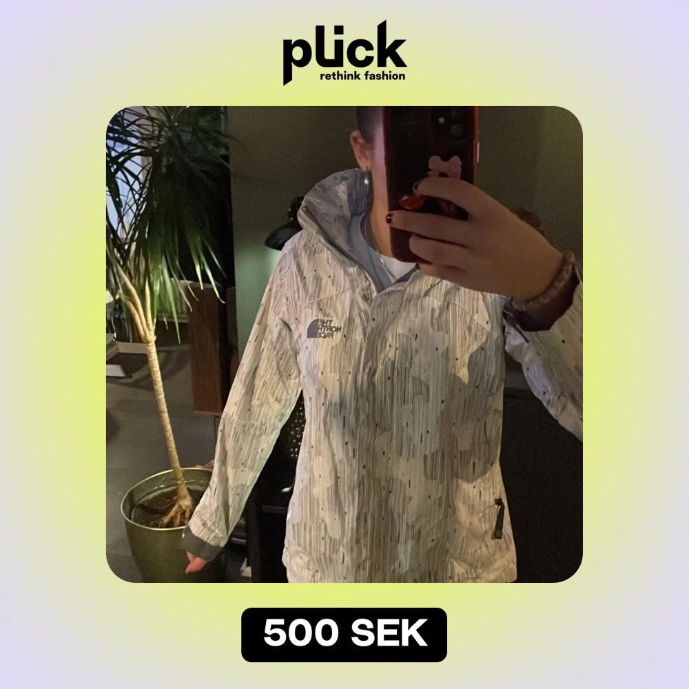 Säljer en snygg vit vindjacka från The North Face med ett diskret randigt mönster. Jackan har en dragkedja framtill och är perfekt för blåsiga dagar. Den har en normal passform och är långärmad. Perfekt för vår och höst!