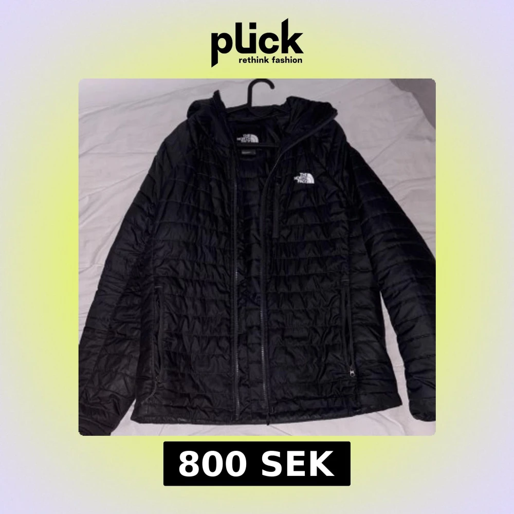 Svart dunjacka från The North Face med huva och dragkedja framtill. Jackan är quiltad och har två sidofickor med dragkedja samt en bröstficka. Perfekt för kyliga dagar och riktigt snygg streetstil.