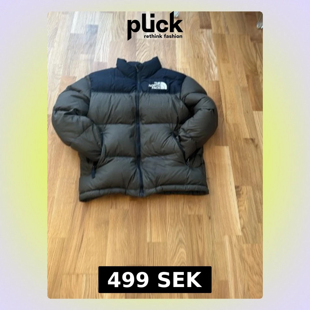 Säljer en pufferjacka från The North Face i svart och mörkgrönt. Jackan har hög krage, två sidofickor med dragkedja och tydlig logga på bröstet. Perfekt för kalla, blåsiga och höstiga dagar med sin dunfyllda, quiltade design och snygg look.