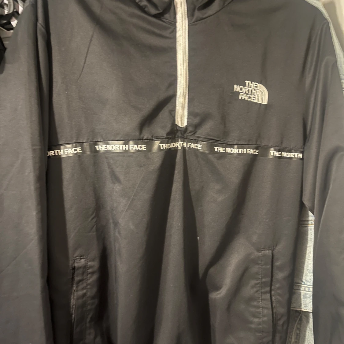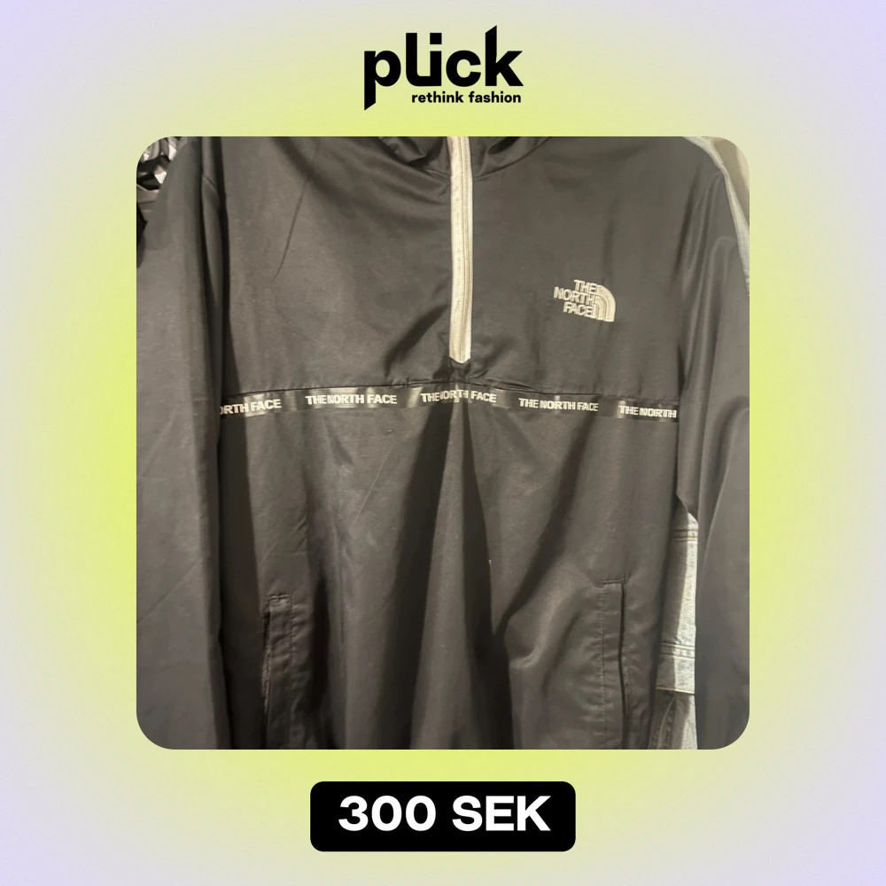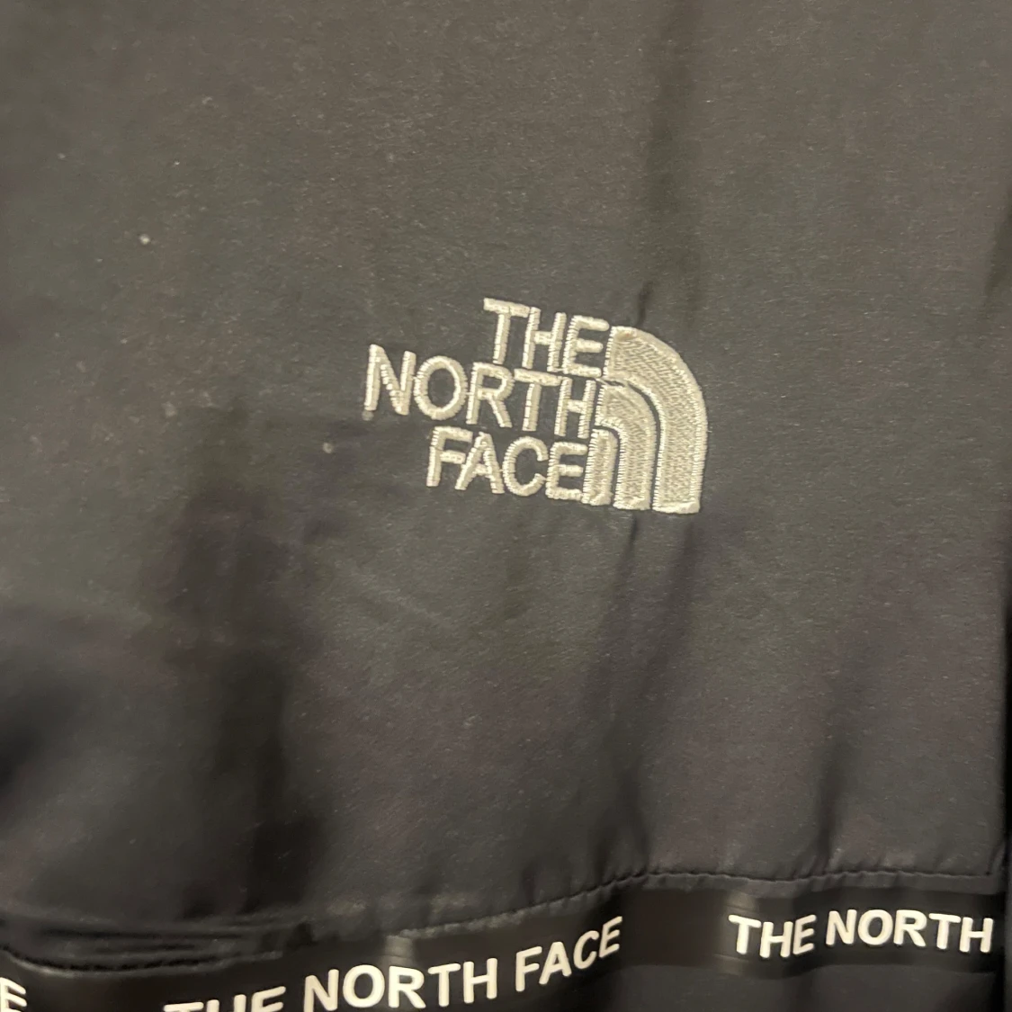 Snygg svart jacka från The North Face med dragkedja och broderad logga på bröstet. Jackan har långa ärmar och en stilren design med märkets namn längs bröstet.