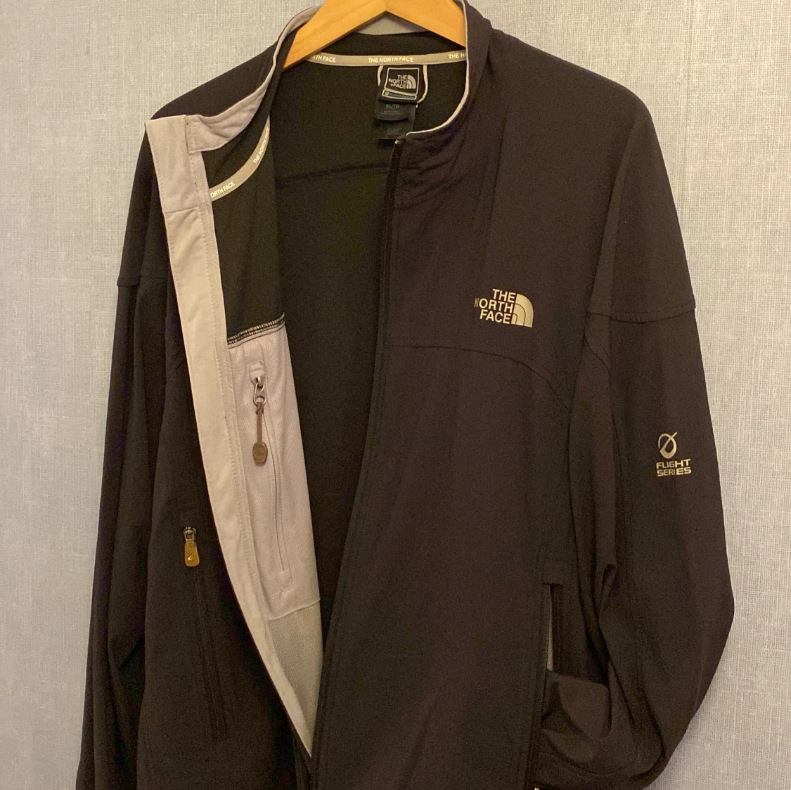 Svart vindjacka från The North Face Flight Series i storlek XL. Jackan har dragkedja framtill, två sidofickor med dragkedja och diskreta loggor på bröstet och ärmen. Tillverkad i polyester och perfekt för blåsiga dagar.