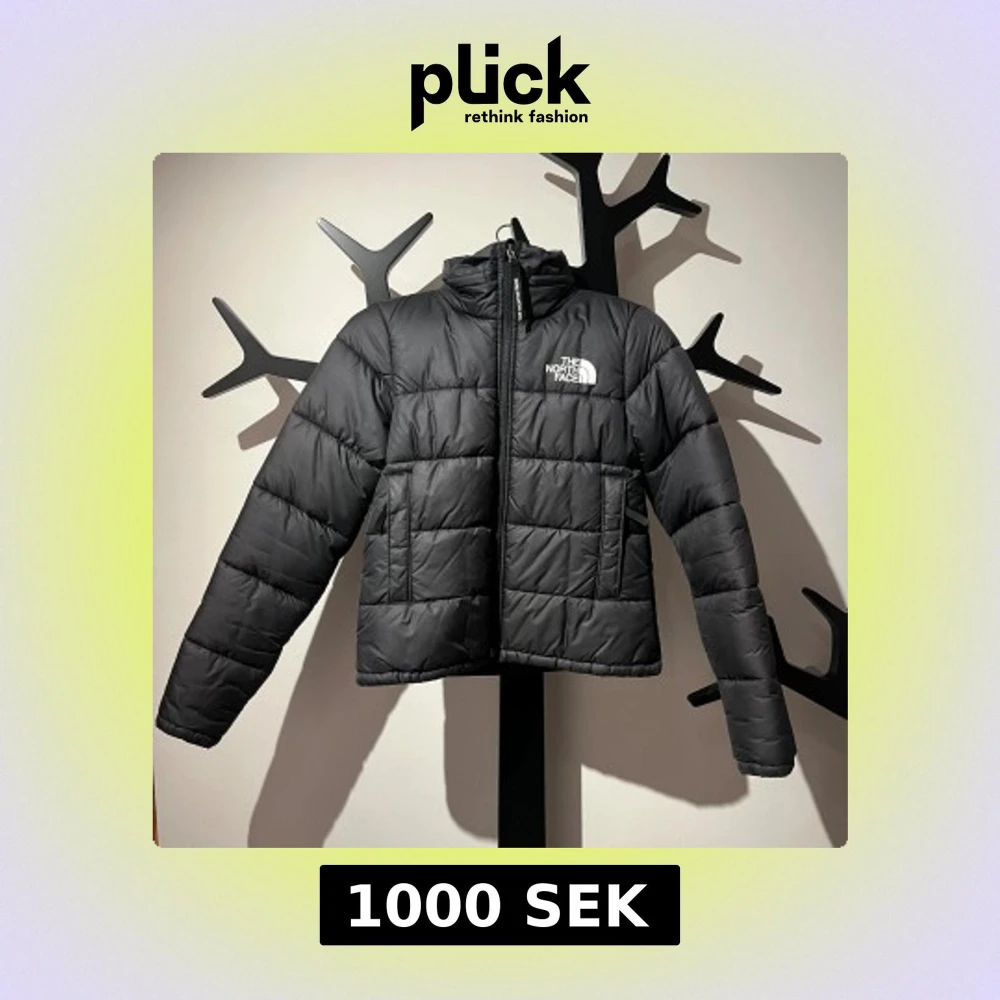 Svart pufferjacka från The North Face i storlek XS. Jackan har hög krage, vita logotryck fram och bak, quiltad design och dragkedja framtill. Jackan har även en lura som går att fälla ut från kragen med hjälp av en dragkedja. Jätte bra skick.