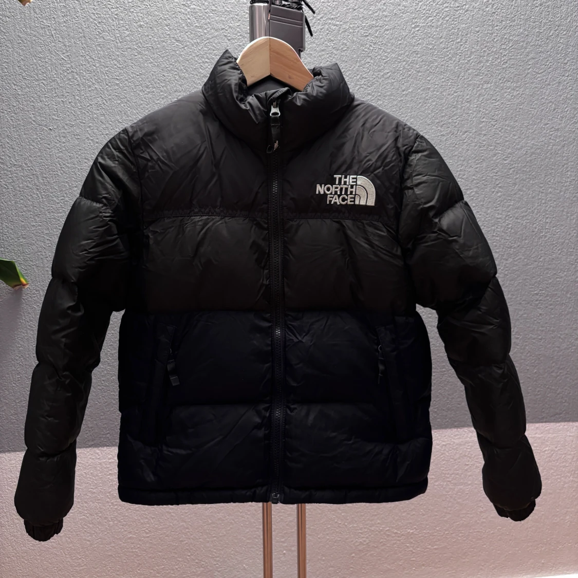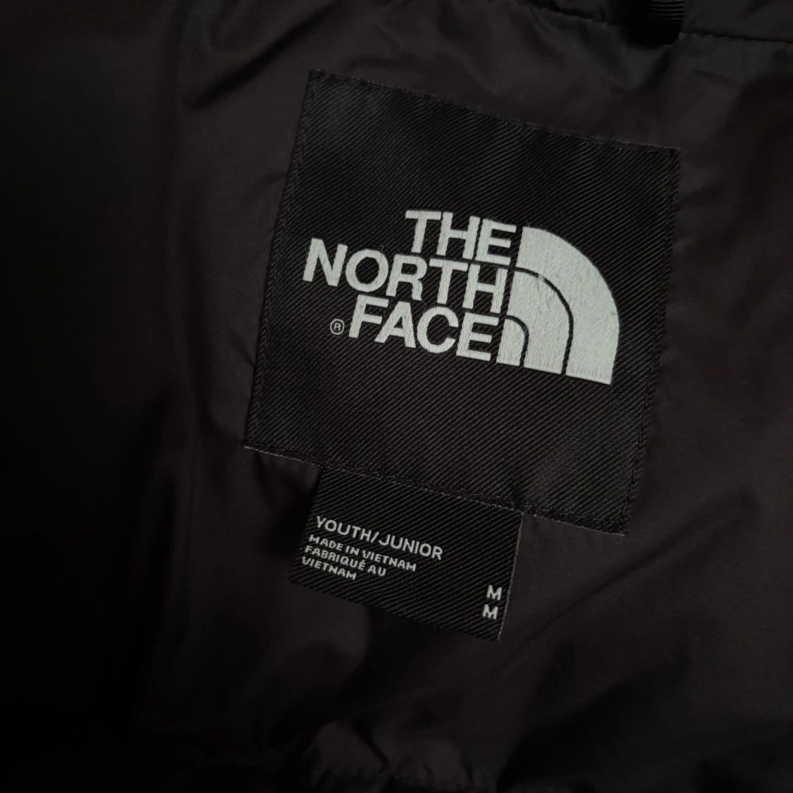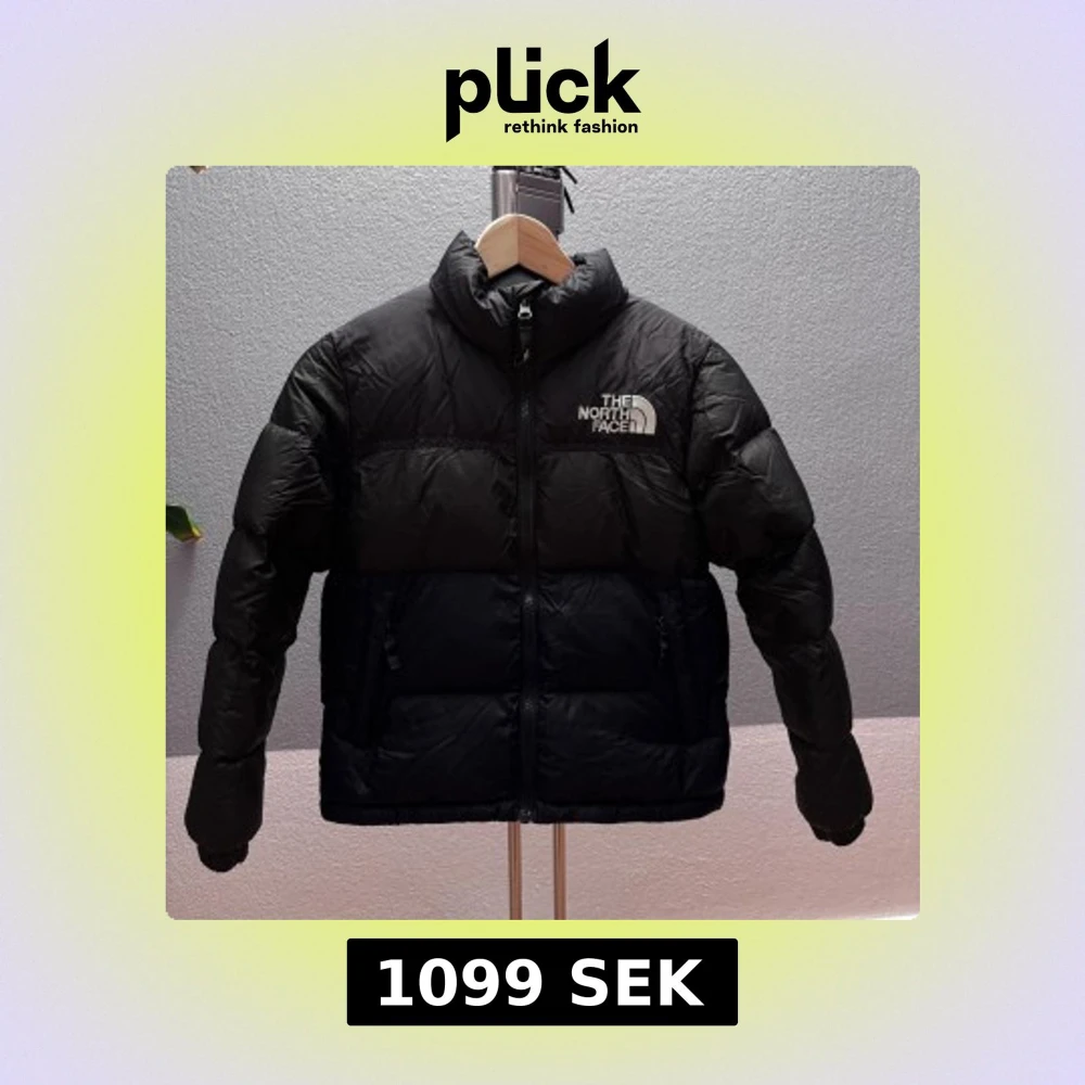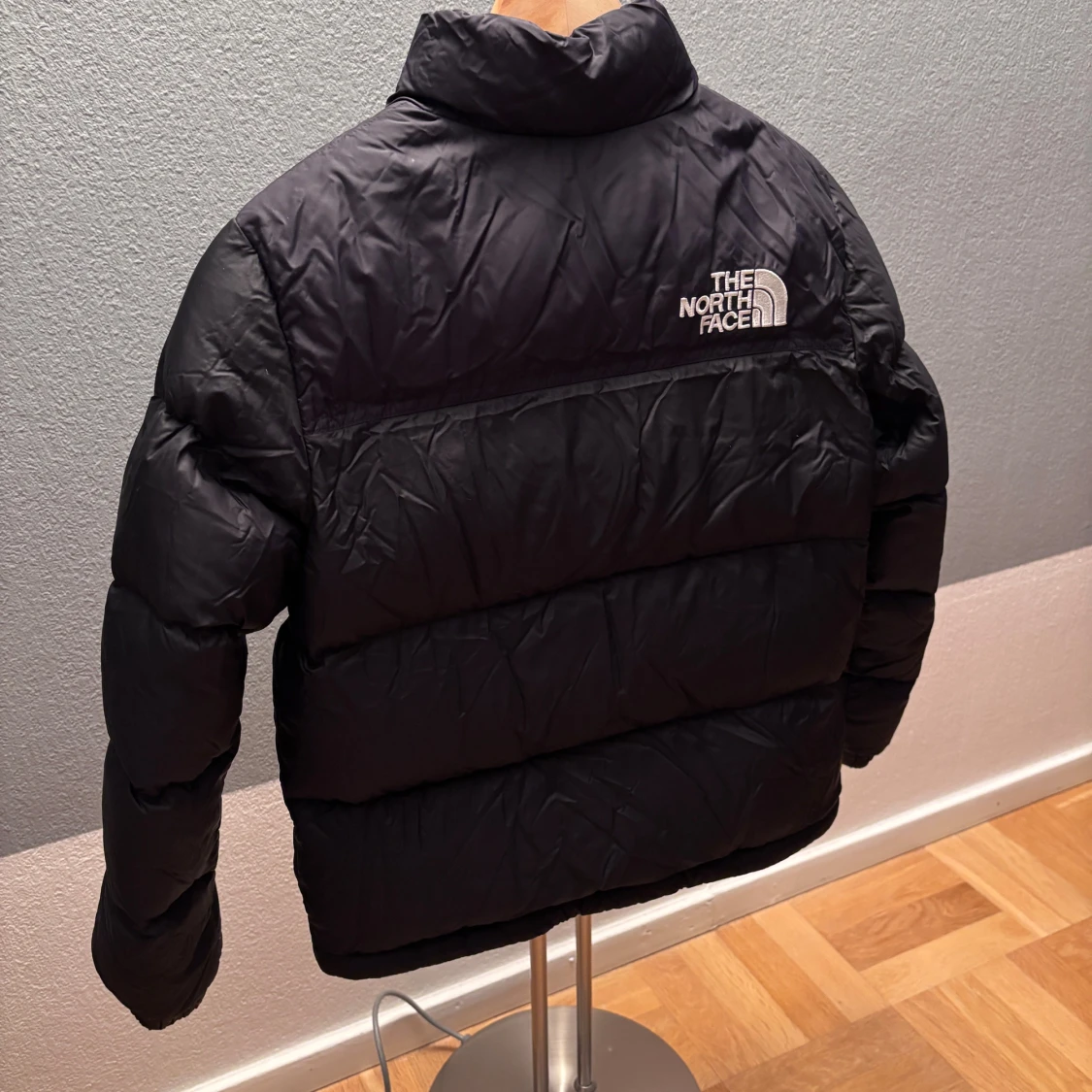 Svart pufferjacka från The North Face med hög krage och synlig logga på bröstet. Jackan har dragkedja framtill och två sidofickor med dragkedja. Materialet är syntet och jackan är vadderad för extra värme. Perfekt för kalla dagar och har en clean, sportig look.