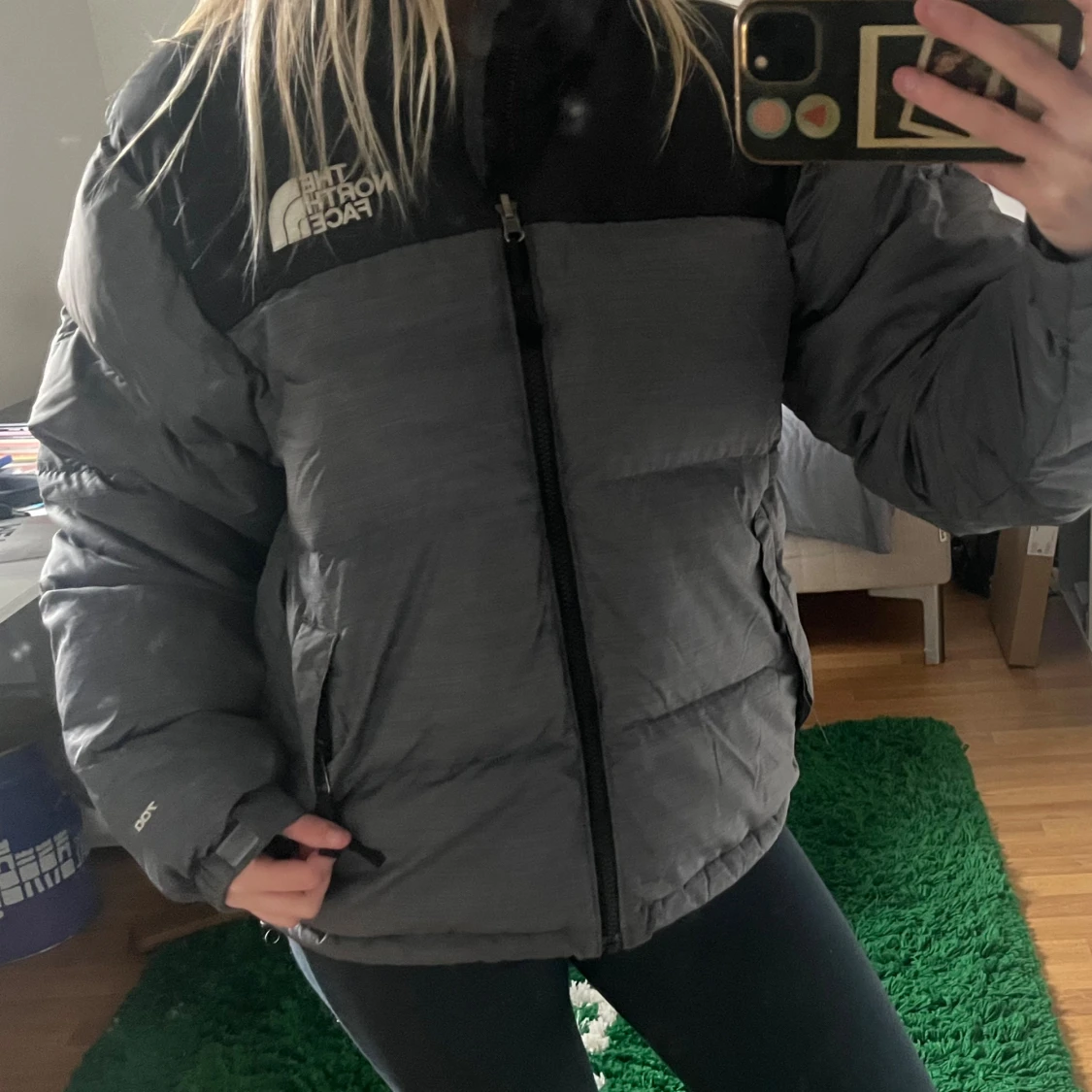 Säljer en grå och svart pufferjacka från The North Face, inga defekter pga att den nästan aldrig kommit till användning