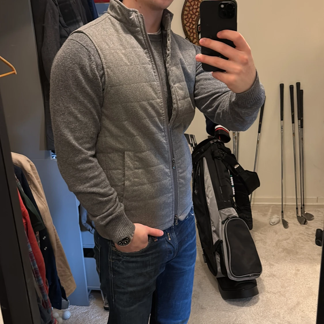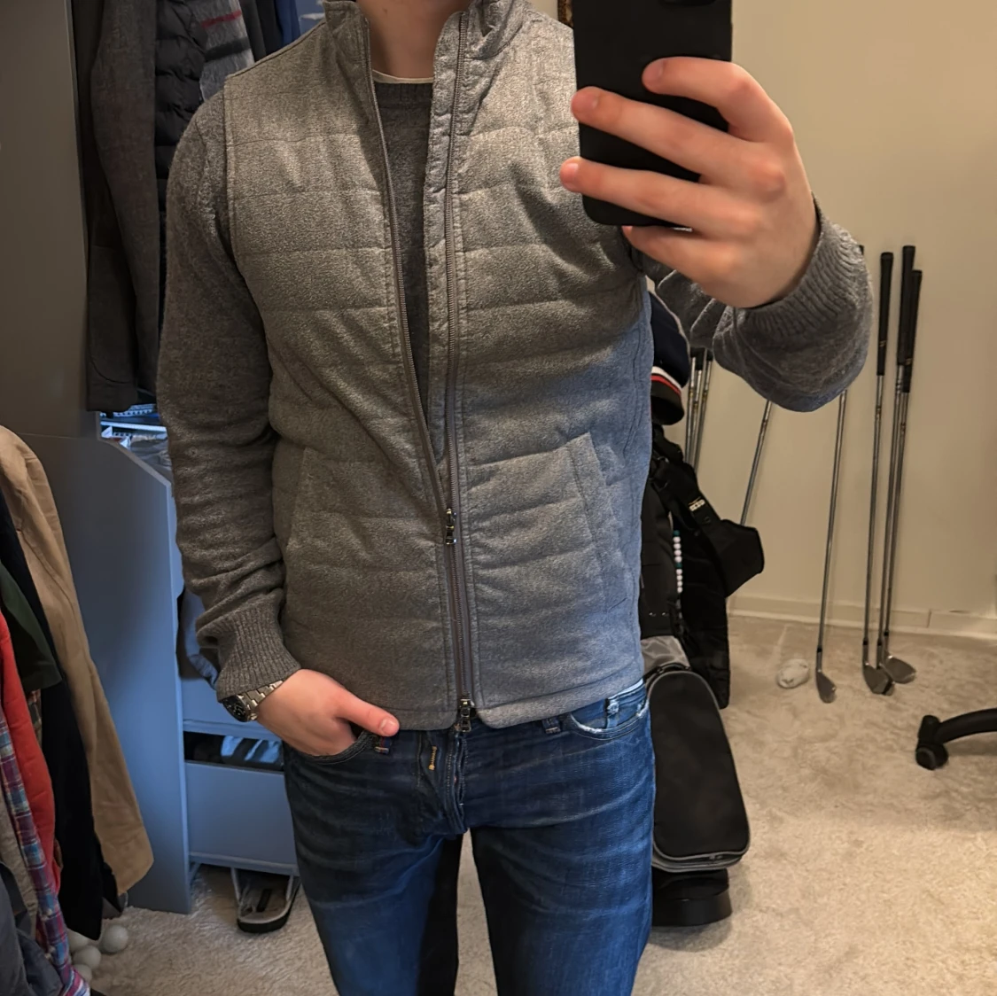 Grå quiltad väst från Riley