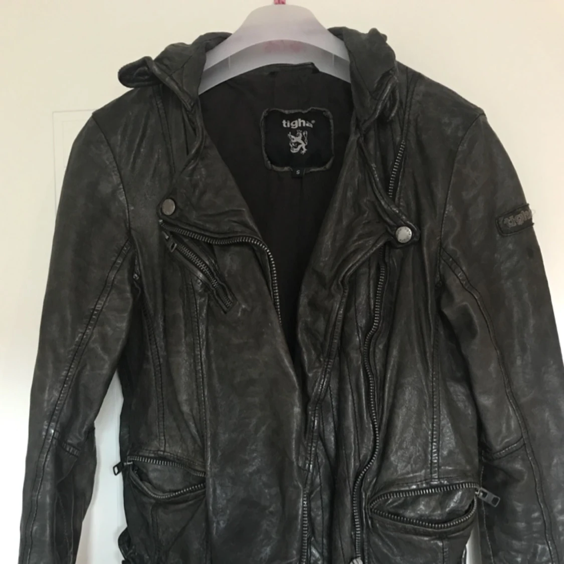 Snygg äkta skinnjacka från Tigha. Använd 3-4 gånger så i gott skick. Storlek S.