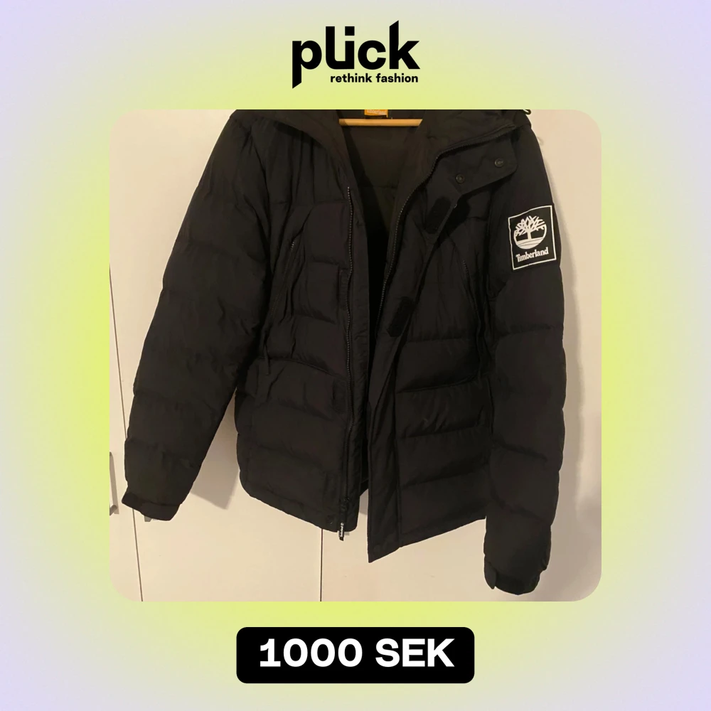 Säljer en svart pufferjacka från Timberland i mycket bra skick. Jackan har en dragkedja och knappar framtill, samt en broderad Timberland-logga på ärmen. Perfekt för kalla vinterdagar med sin varma och quiltade design. Den har en huva för extra skydd mot väder och vind.