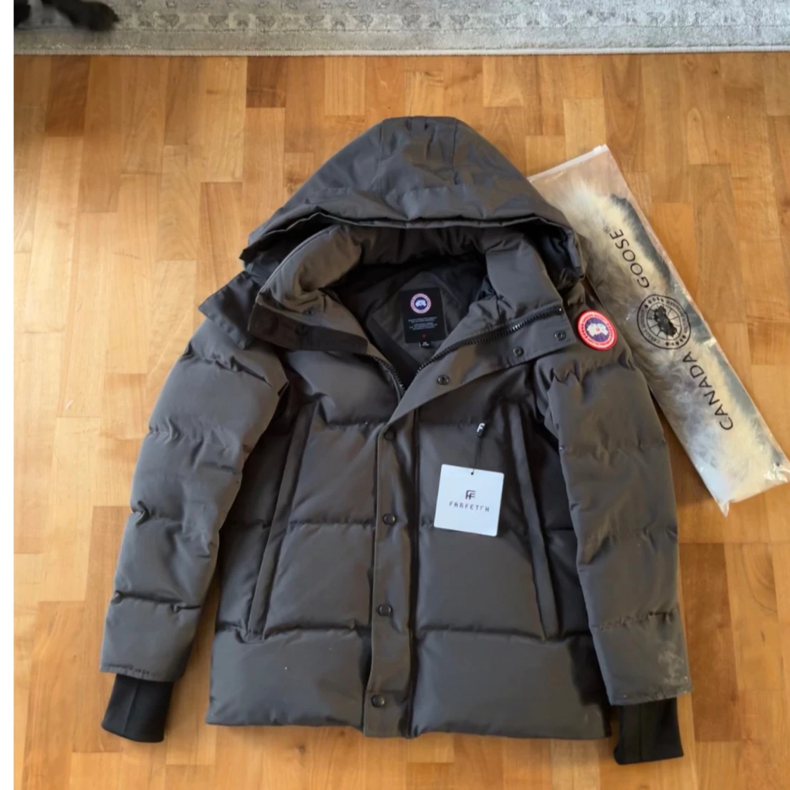 Grå canada goose wyndham storlek M. Har tröttnat på den. Kan även tänka mig att byta emot Moncler Maya.