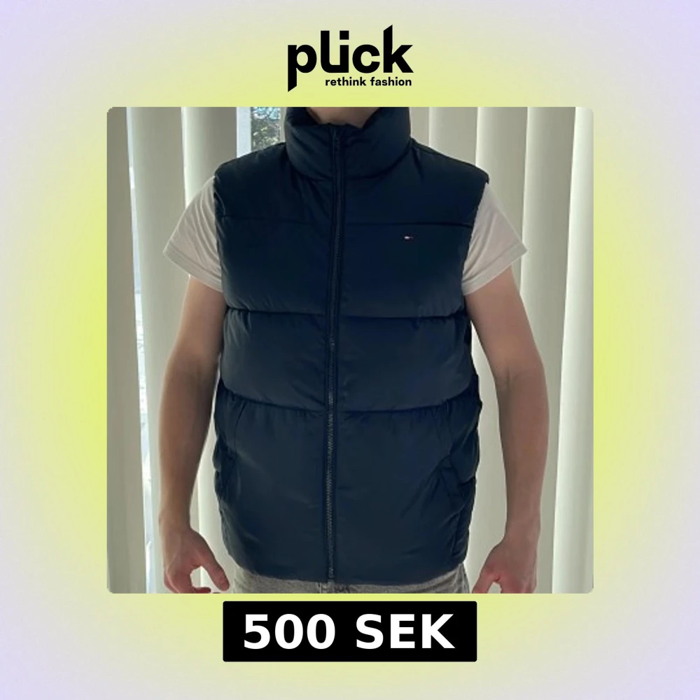 Säljer en snygg mörkblå dunväst från Tommy Hilfiger. Västen har en dragkedja framtill och en stilren design. Perfekt för att hålla värmen under kyliga dagar. Nypris 1300kr, Sjukt bra pris just nu på denna stiliga väst! Passar bra till både casual och mer uppklädda tillfällen ✅