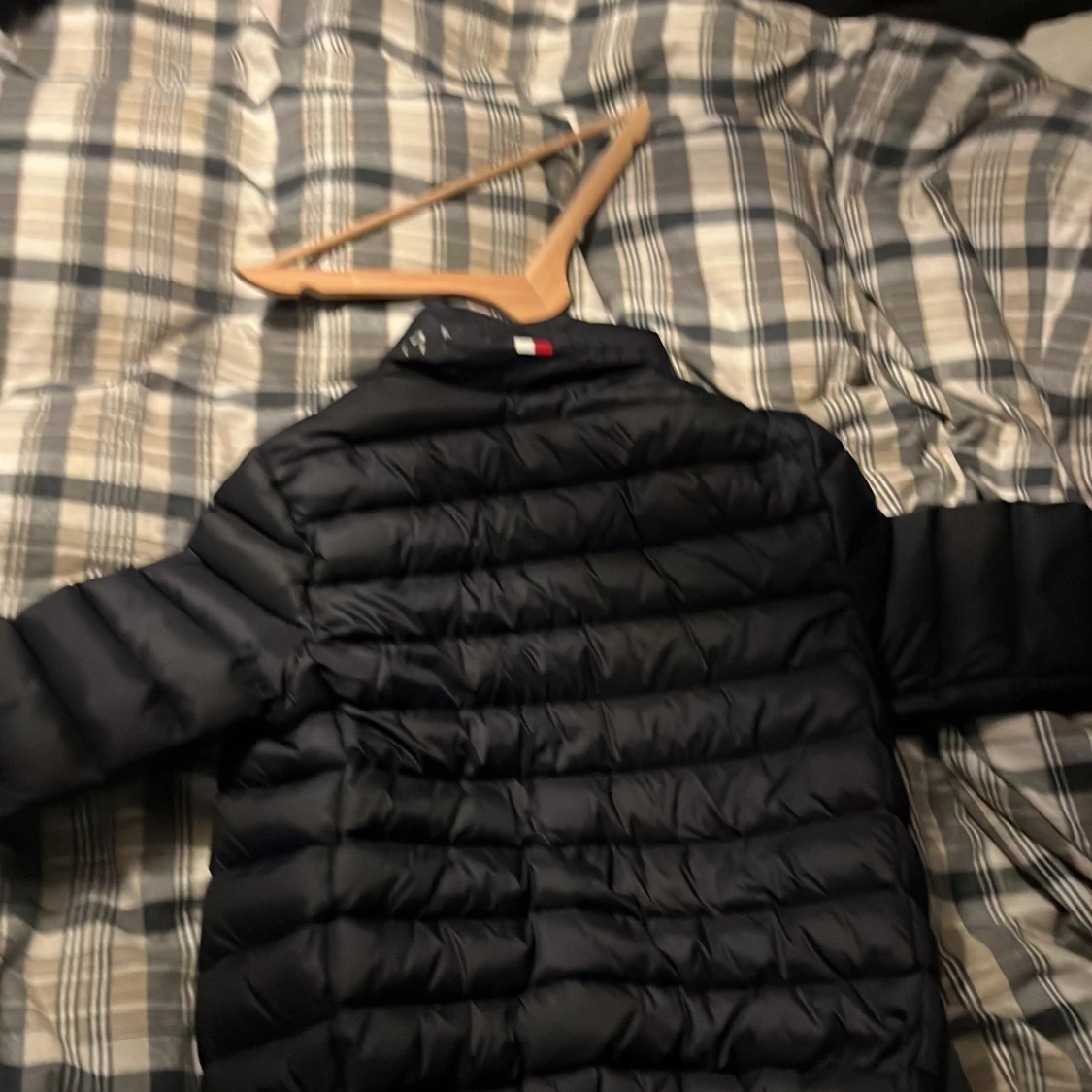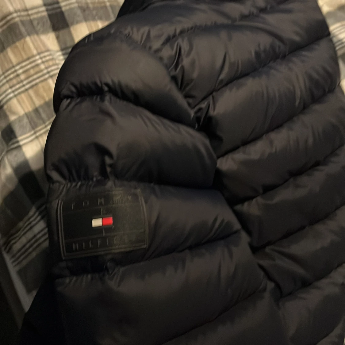 Säljer en stilren svart dunjacka från Tommy Hilfiger. Jackan har en quiltad design med dragkedja framtill och en liten logotyp på bröstet. Perfekt för kyligare dagar. Kan gå ner på priset vid en snabb affär