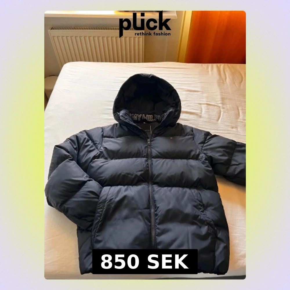 Snygg blå pufferjacka från Tommy Hilfiger med huva och dragkedja. Jackan är i storlek 164 och har broderad logga på insidan av kragen och klassisk quiltad design. Perfekt för kalla dagar och riktigt skön att bära. Jackan är från förra vintern och utan repor eller annat. Skriv om du vill ha en till bild eller om du undrar något om jackan🙃