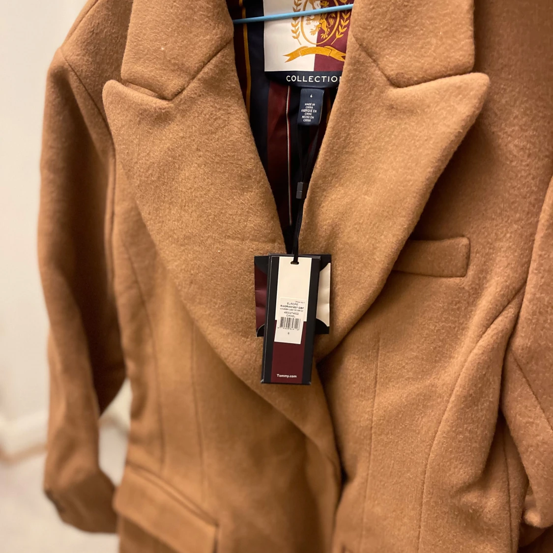 Snygg camel-färgad kappa från Tommy Hilfiger i storlek 36, känns mer som 38, jag upplever den som stor i storleken. jag upplever den som stor i storlek, därför säljs den! Ny med etikett, ord pris 6000kr. Jag har kvitto. (ber om ursäkt att den är skrynklig, legat i kartong)