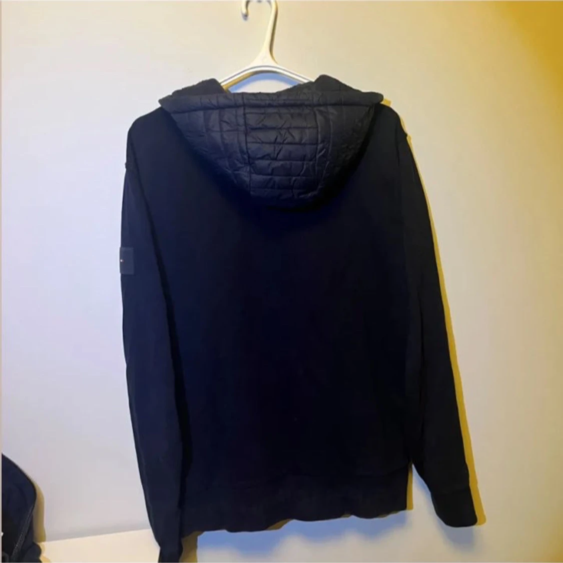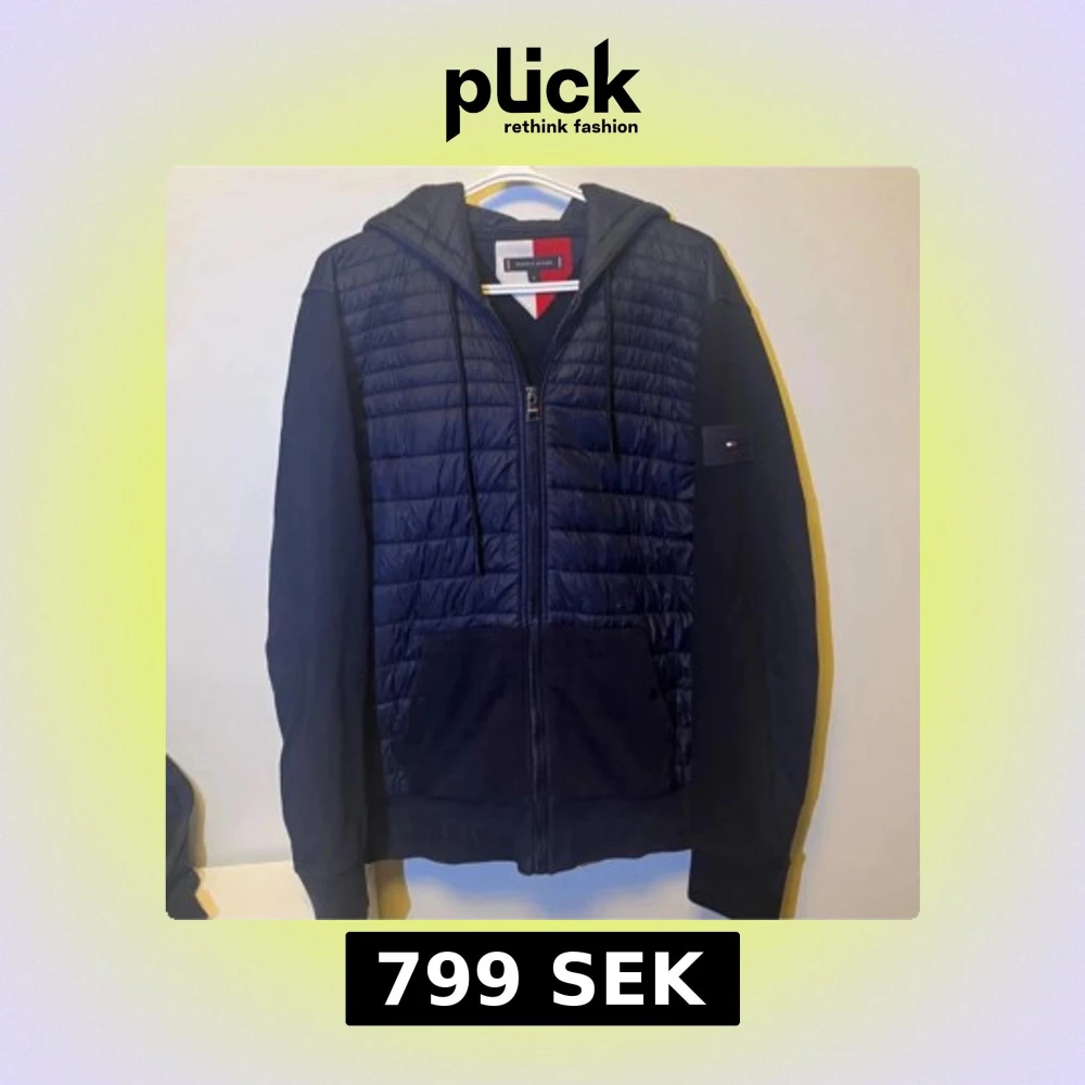 Snygg mörkblå cardigan från Tommy Hilfiger med quiltad framsida och huva. Jackan har dragkedja, två fickor fram och diskret logga på ärmen. Perfekt för dig som gillar stilren look. Storleken är XL men passar L. Nypris 2300 mitt pris 799✅
