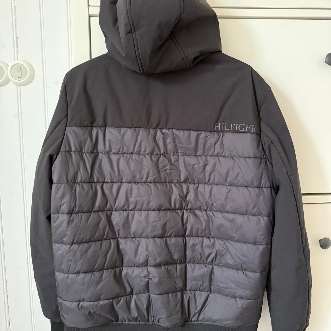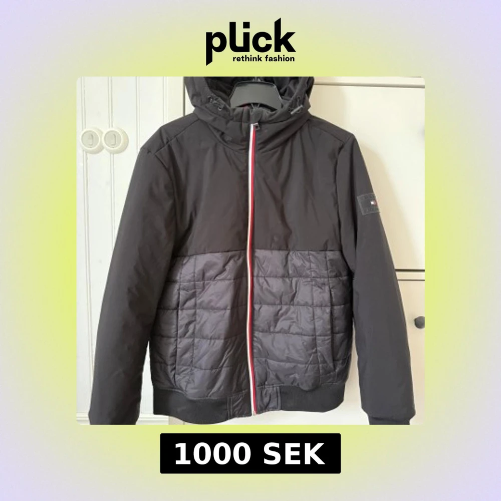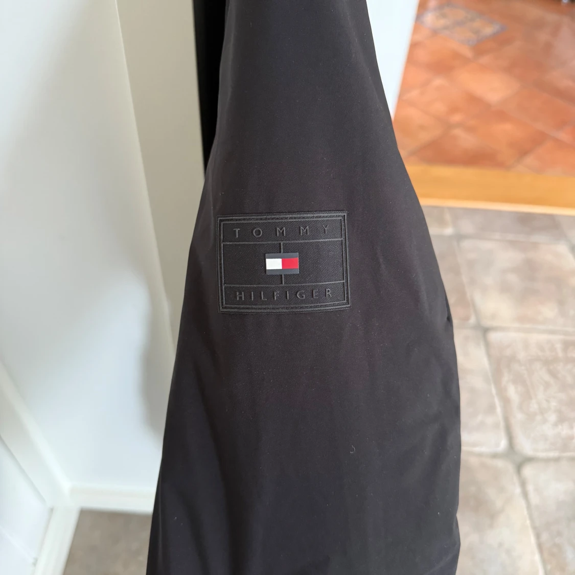 Snygg svart jacka från Tommy Hilfiger. Medelfodrad och vindtålig. Superfint skick då den inte kommit till så mycket användning. Storlek Herr M. Nypris 2700kr.