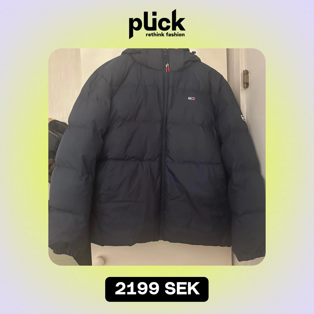 Blå puffer jacka från Tommy Hilfiger i storlek M. Helt ny/oanvänd med prislapp kvar och säljs på grund av att den aldrig kommit till användning. Fin passform och passar bra framåt kallare årstider. Luvan är avtagbar!