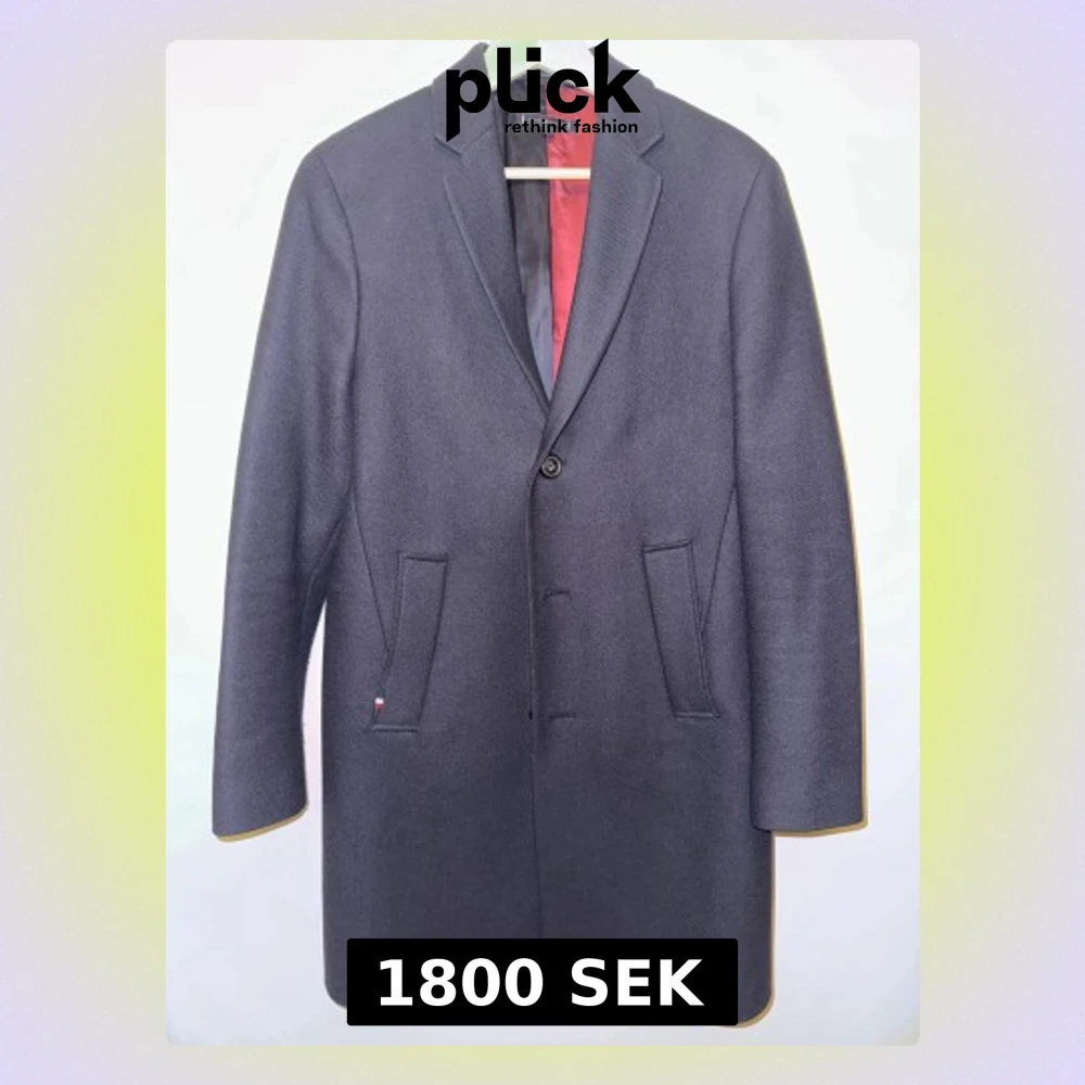 Snygg mörkblå rock från Tommy Hilfiger med klassisk krage och två framfickor. Fodret är delvis vinrött och svart, vilket ger en schysst kontrast. Jackan har en enkel knappstängning och stilren design som funkar till många looks.