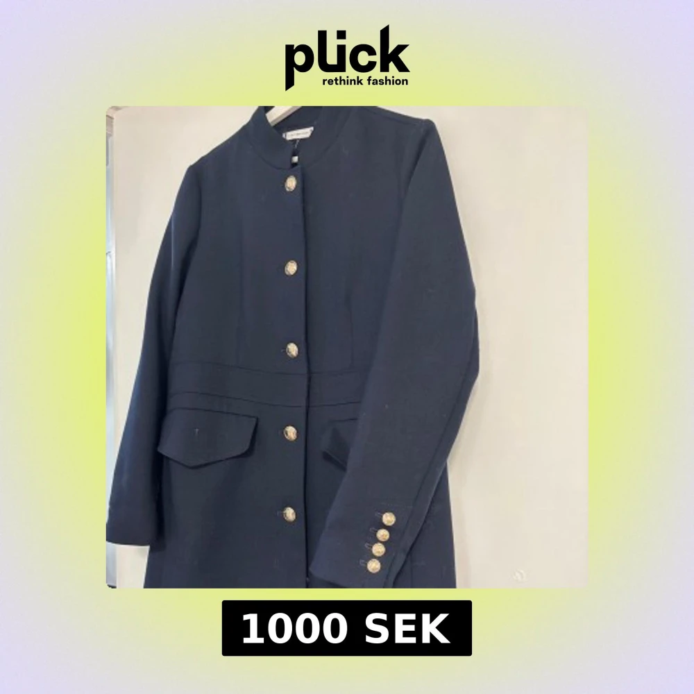 Elegant mörkblå kappa från Tommy Hilfiger med guldknappar och stilrena fickdetaljer. Perfekt för en sofistikerad look. Kappan har långa ärmar och en klassisk design.