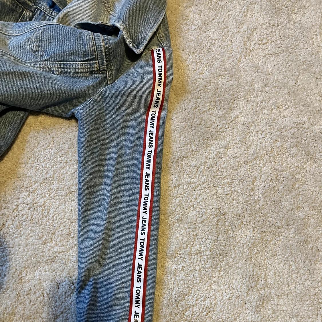 Jeansjacka från Tommy jeans i strl S i en blå-blå färg. Denna jacka har aldrig blivit använd tyvärr då jag har andra, men den sälj inte längre vad jag kan se och är en ovanlig modell. Ganska slim fit strl (inte en oversized fit) och värd ca 1400kr.