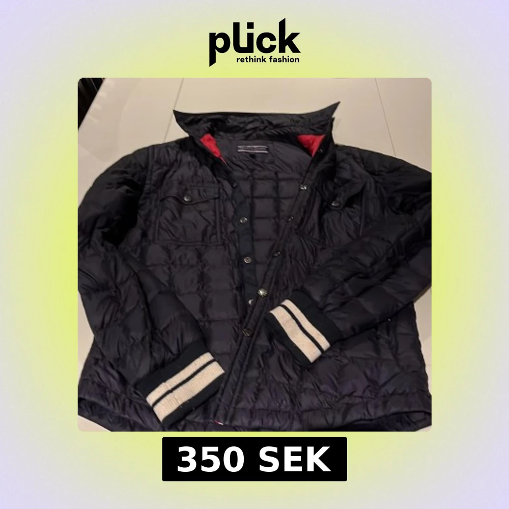 Säljer en snygg svart quiltad jacka från Tommy Hilfiger. Jackan har långa ärmar med ribbade muddar och stängs med knappar. Perfekt för kyligare dagar med sin stilrena design och bekväma passform.