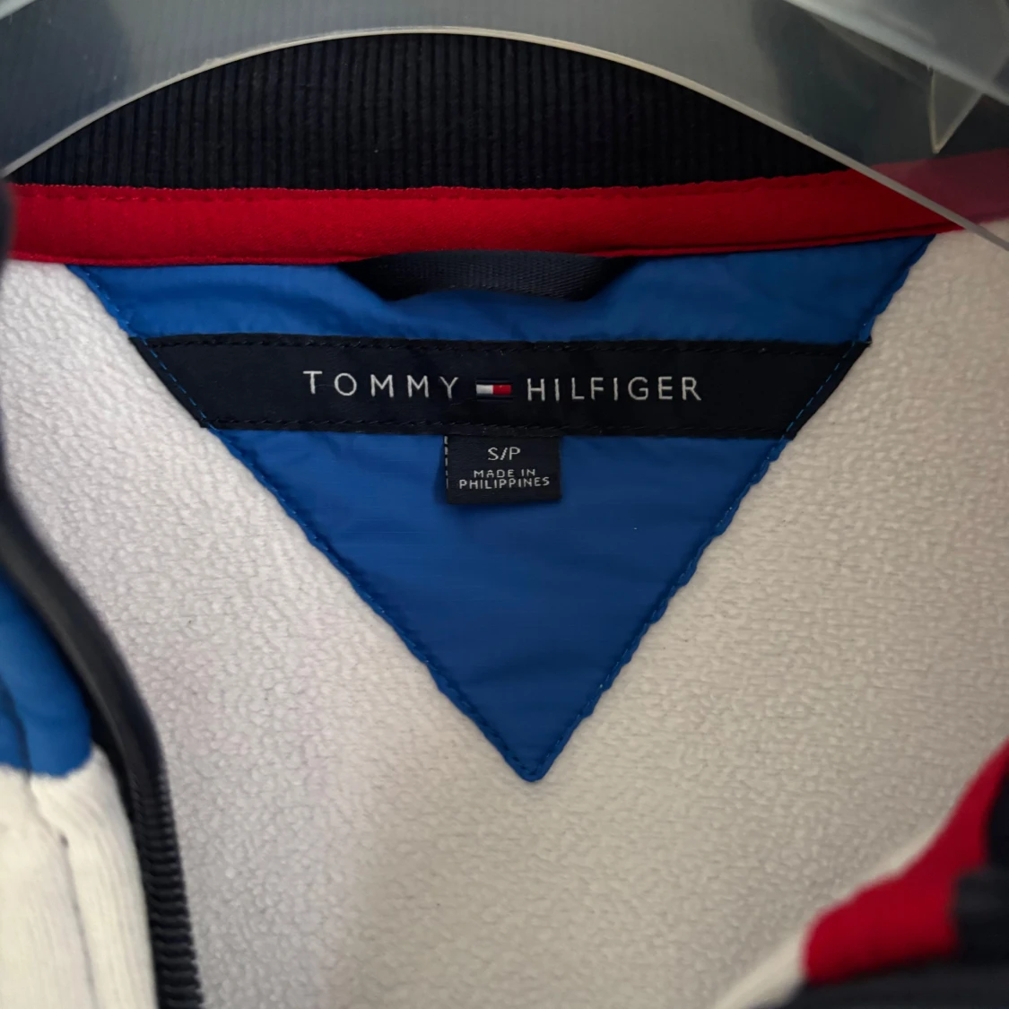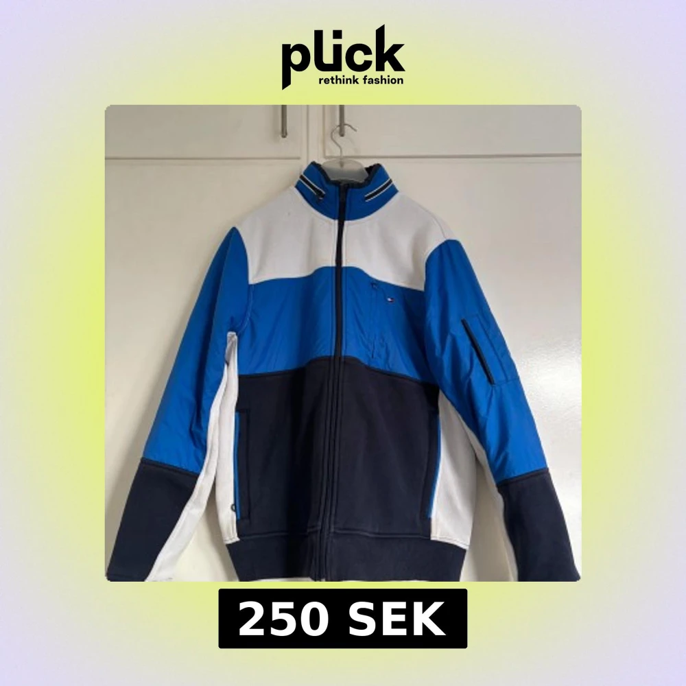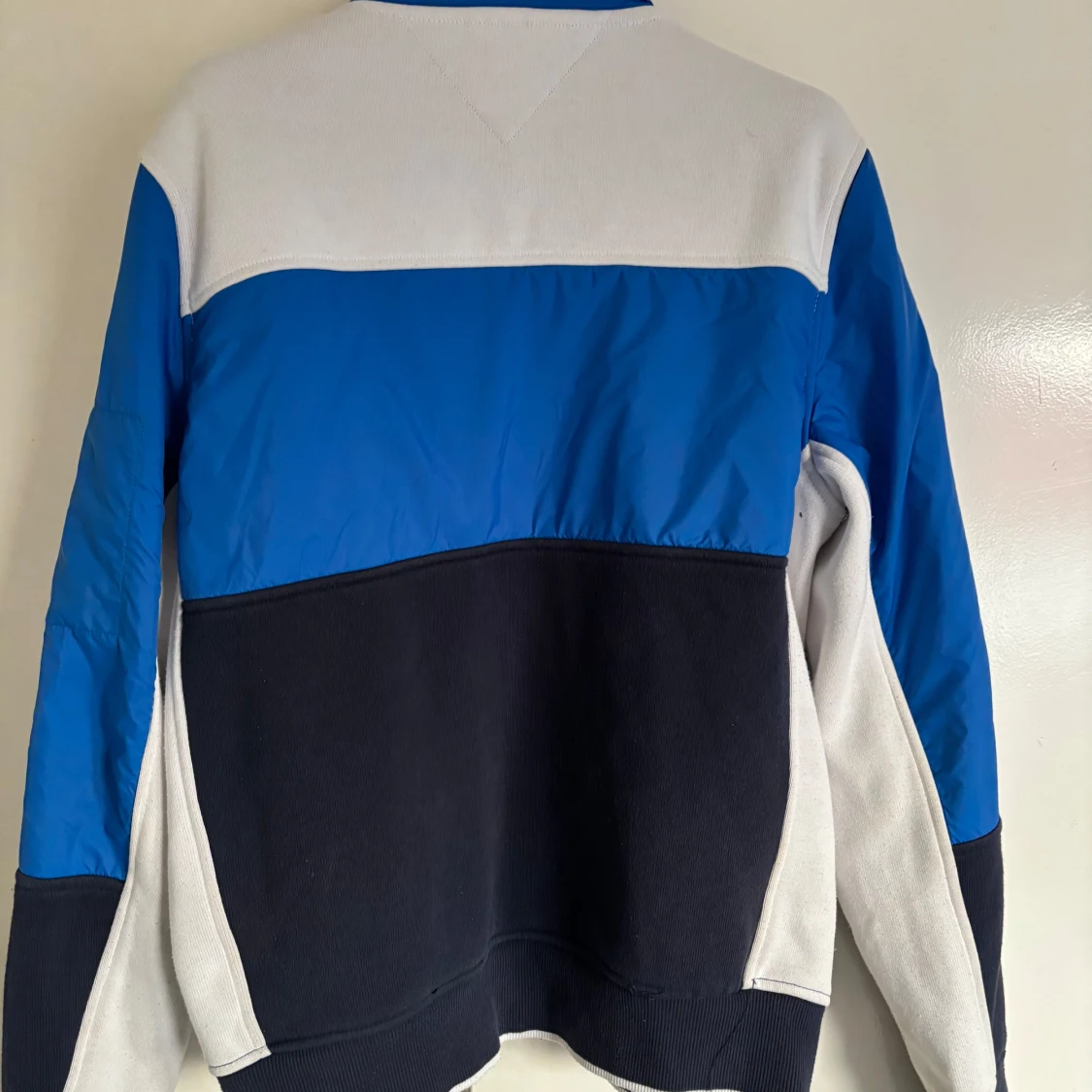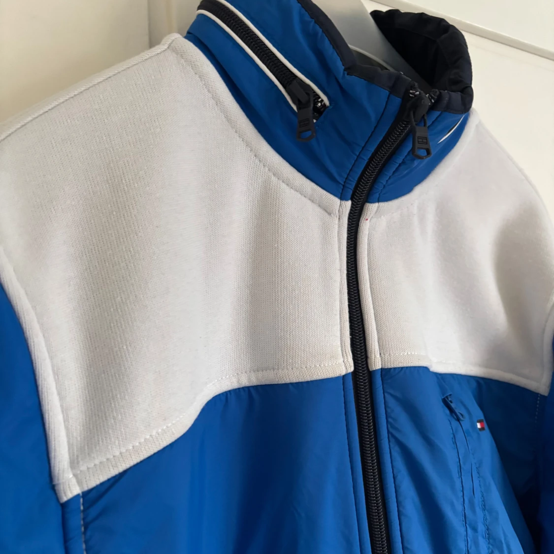 Snygg jacka från Tommy Hilfiger i blått, vitt och svart. Jackan har hög krage, dragkedja framtill och två fickor med dragkedja. Perfekt för dig som gillar sportig stil och vill sticka ut med klassiska färger.