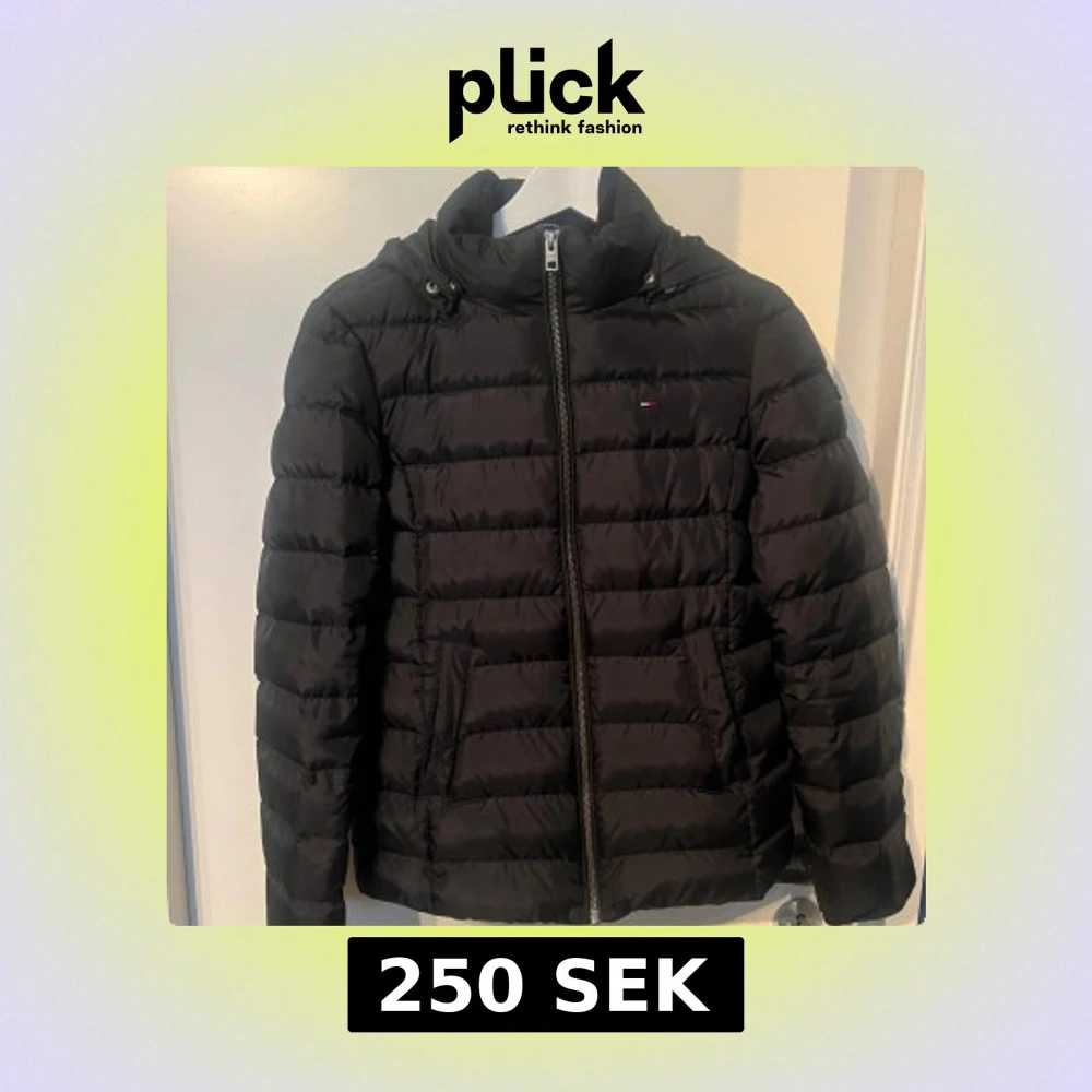 Snygg svart pufferjacka från Tommy Hilfiger med dragkedja och hög krage. Perfekt för kyliga dagar med sin vadderade design. Jackan har långa ärmar och diskret logga på bröstet.