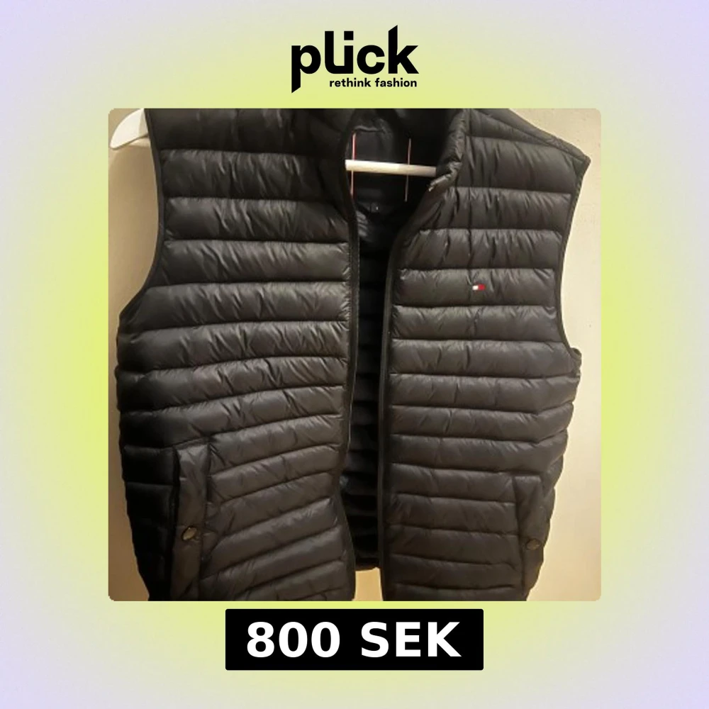 Snygg svart dunväst från Tommy Hilfiger med dragkedja. Perfekt väst inför hösten och våren. Säljer västen då den inte passar mig längre. Köpt för 1500, använd någon enstaka gång då den inte passade mig.