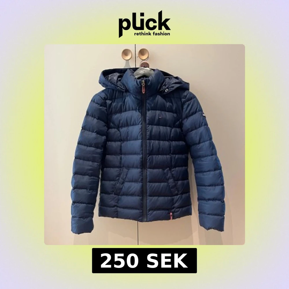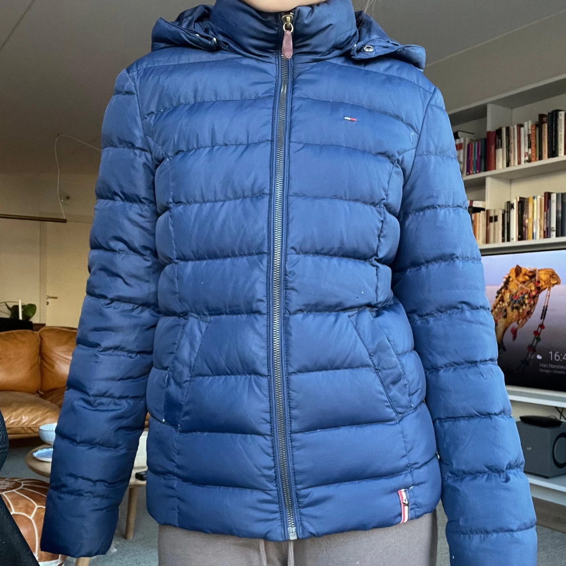 Snygg marinblå pufferjacka från Tommy Hilfiger med huva och dragkedja framtill. Jackan har quiltad design, två fickor och diskret logga på bröstet. Perfekt för kyliga dagar och har en modern, normal passform.