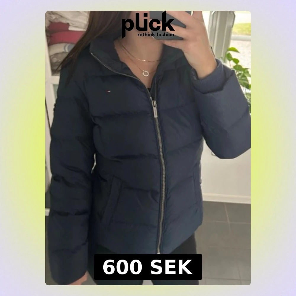 Säljer en mörkblå pufferjacka från Tommy Hilfiger med diskret logga på bröstet och ärmen. Jackan har hög krage, dragkedja framtill och två fickor. Perfekt för kalla dagar då den är gjord på dun. Luvan saknas
